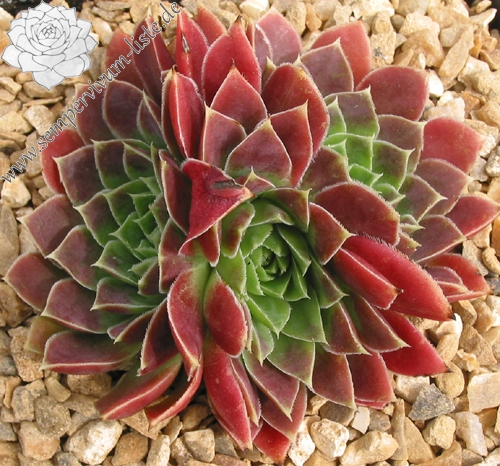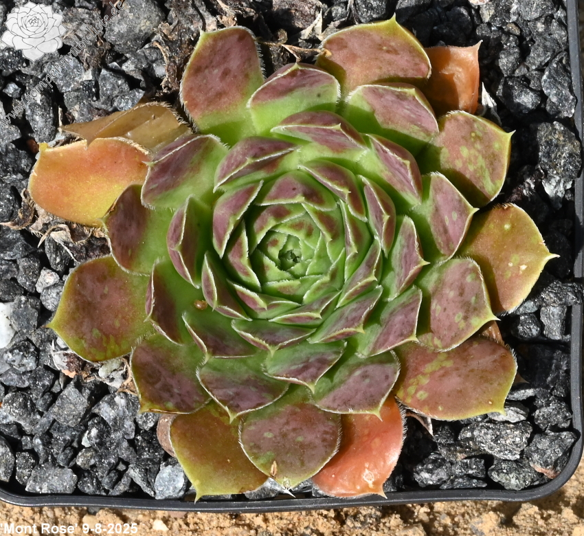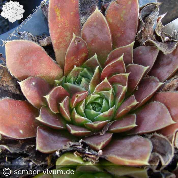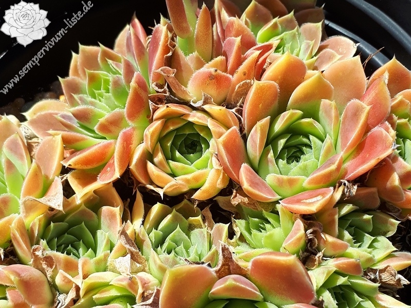 Ein kleiner wüchsiger Sämling aus den Niederlanden von Cornelis Versteeg. Er hat schöne Züchtungen eingeführt. Am schönsten ist ihre Färbung im September in Rosa mit grünem Zentrum der Rosetten.
