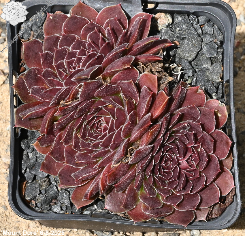 Rosetten bis 5 cm, Blätter rundlich, kurz bespitzt, samtige Substanz, pastellrotlila - pastelllila, Blattränder bewimpert