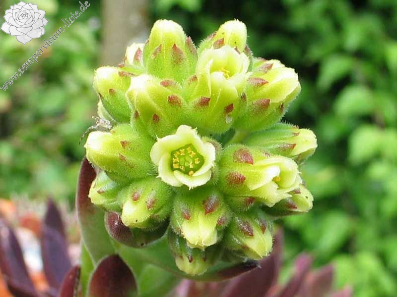 Rosetten bis 6 cm, Basis grün, Rest helle und dunkle Rottöne, Ränder leicht bewimpert