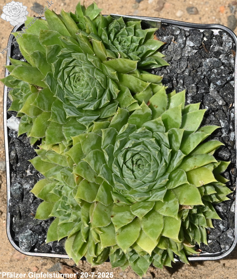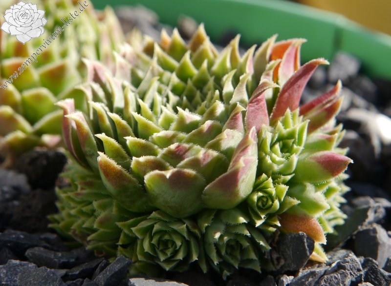 Eine neuere deutsche Auslese von Sämlingen der Kreuzung S. heuffelii from Jakupica mit S. globiferum. Sie formt frischgrünen Rosetten, die sehr kompakte Polster bilden.