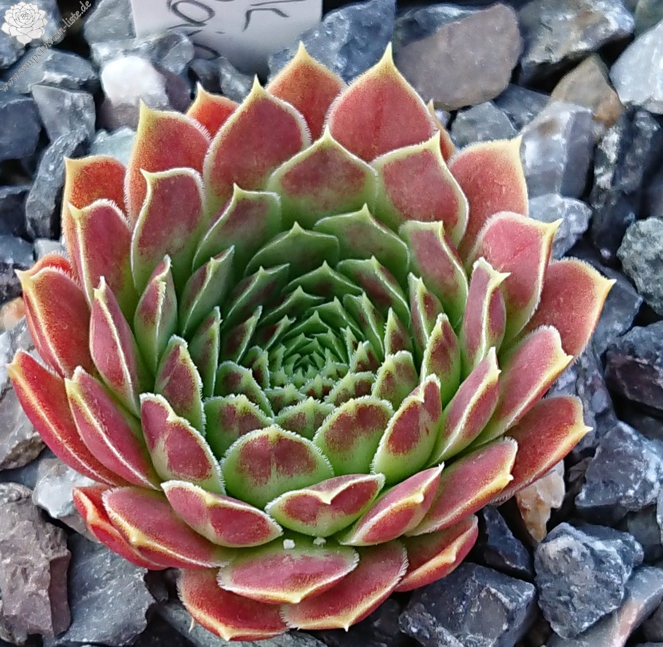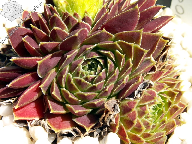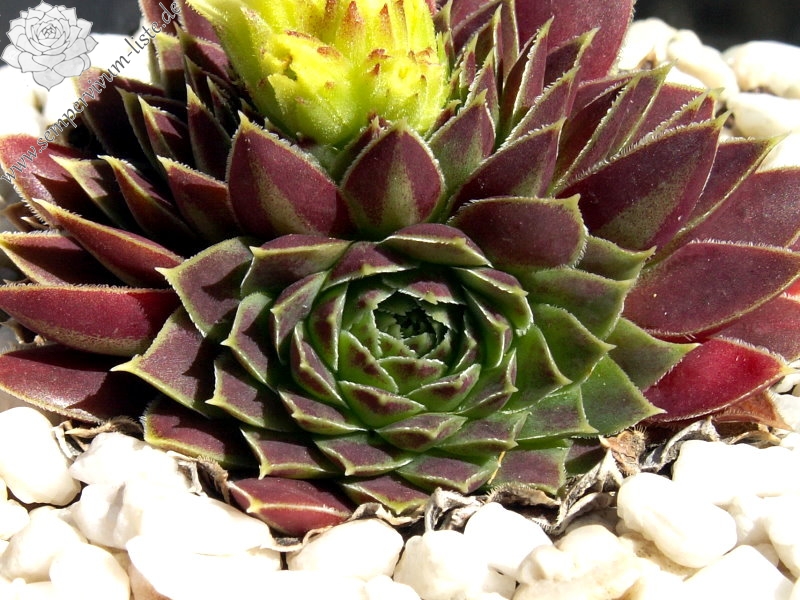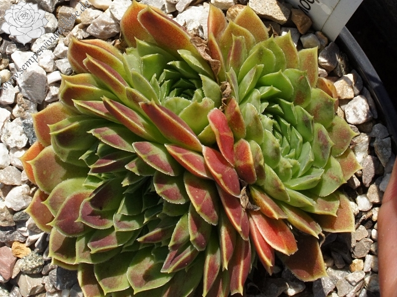 Diese bezaubernde Schönheit haben wir im Jahr 2007 von unzähligen Sämlingen einer Saatmischung des Donarsbarts ausgelesen. Die Rosetten messen einen Durchmesser von etwa fünf bis sechs Zentimetern. Die relativ kurzen und auffallend spitzen Blätter zeigen ein farbliches Regenbogenspektakel in den Farben rosa, lachs und orange. Dazu das pastellfarbene Apfelgrün – brillant! Wir haben nun aus einer Rosette innerhalb von vier Jahren bereits 100 kräftige Pflanzen für Sie herangezogen.