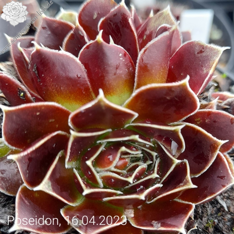 Rosetten bis 5 cm, Blätter breit keilförmig, kurz bespitzt, braunrot - weinrot, Blattränder bewimpert