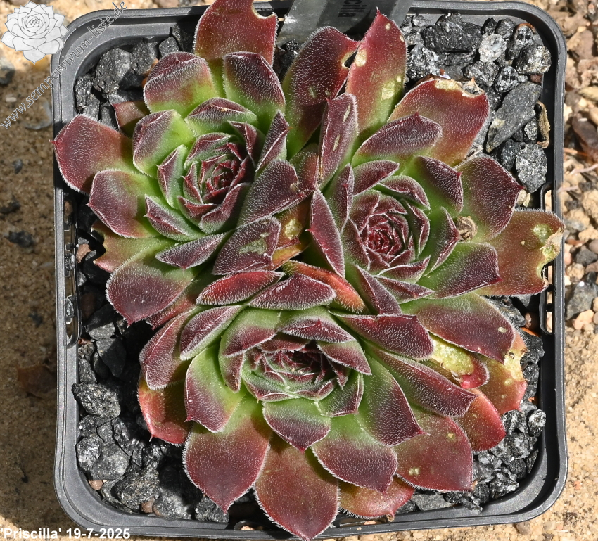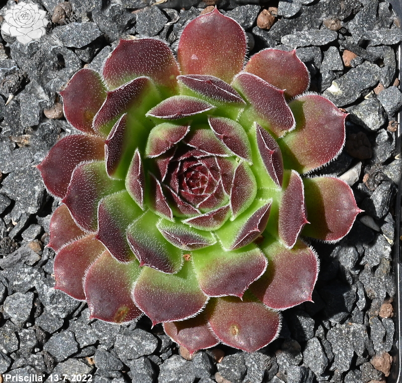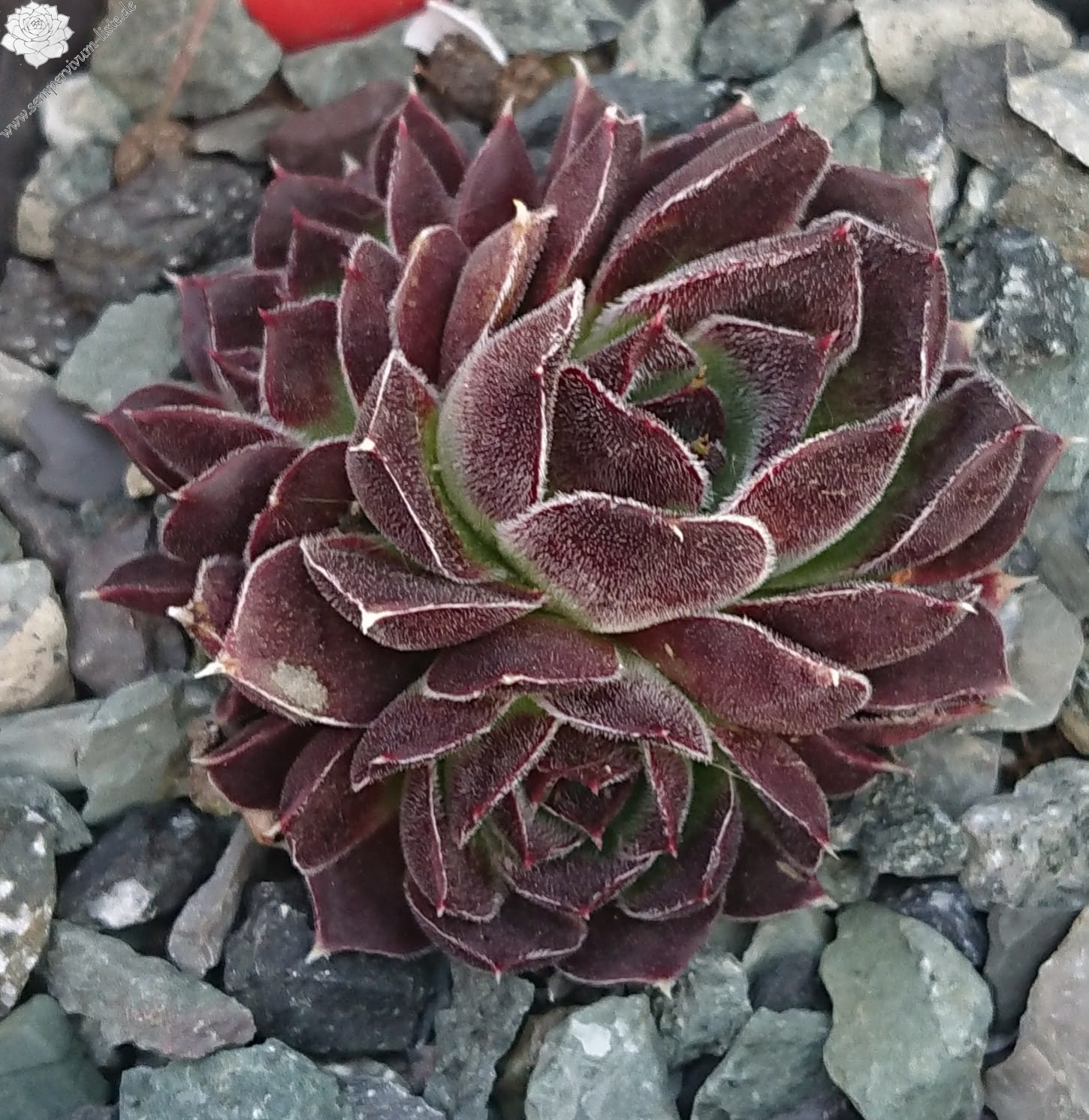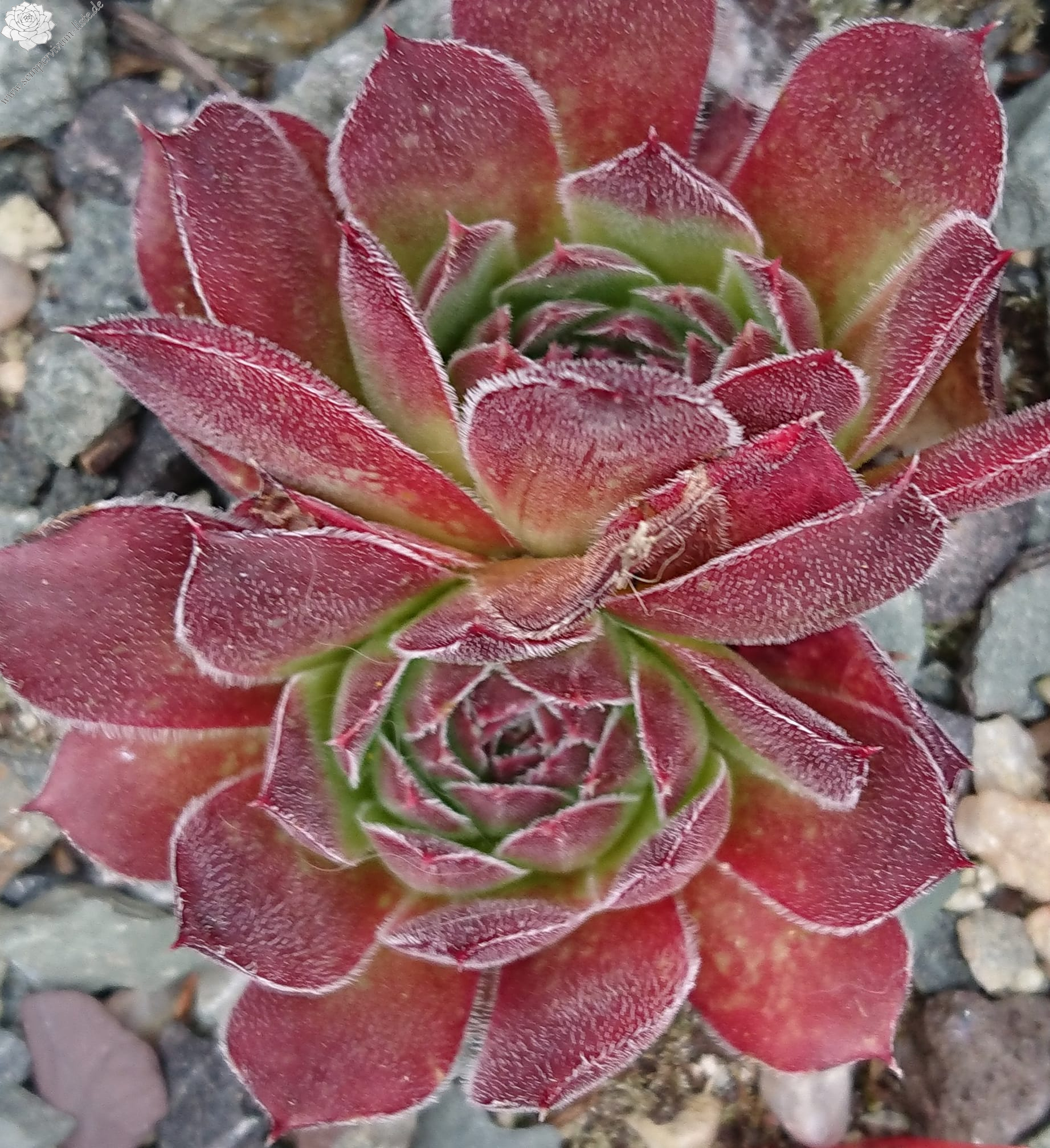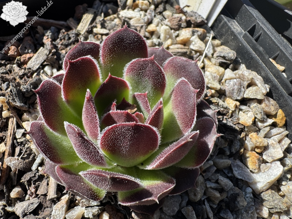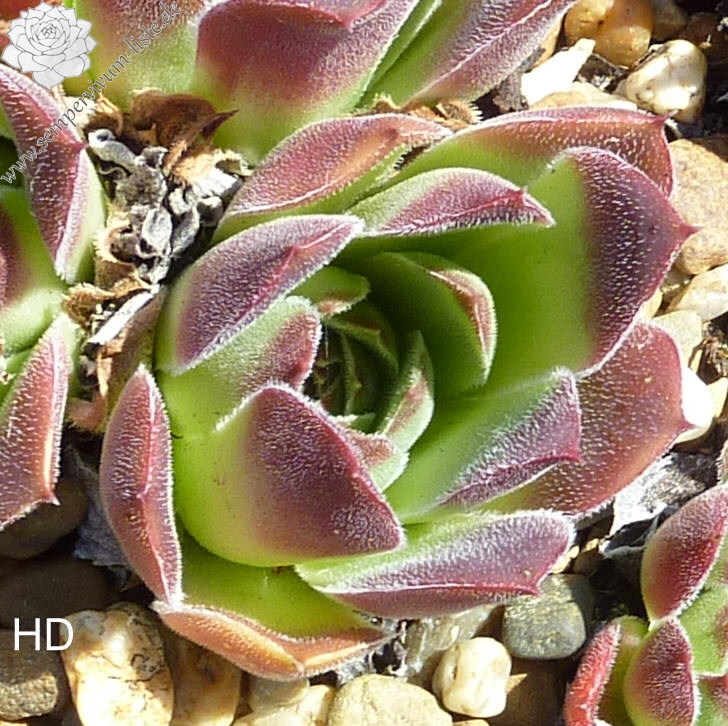 kleine wenigblättrige Rosetten, Blätter eiförmig, kurz bespitzt, samtige Substanz, helles Grün, Spitzen altrosa - rot