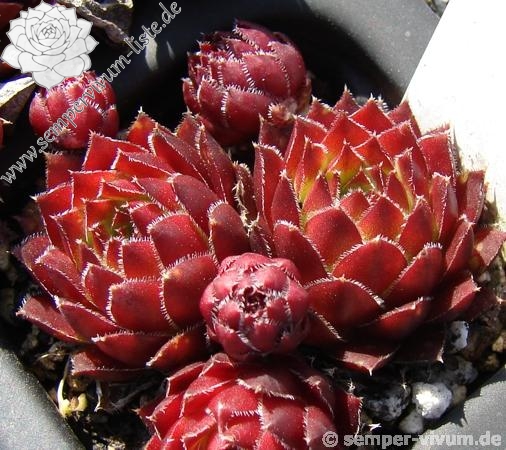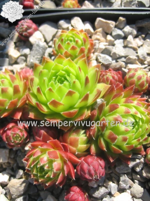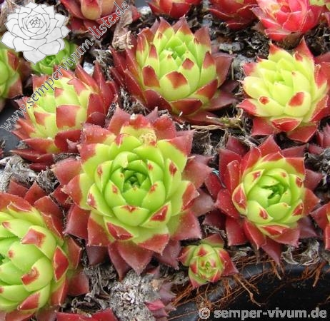 Die belgische Auslese aus den 90er Jahren tendiert etwas zu S. x nixonii. Man könnte sie fast schon als intermediär ansehen. Sie formt relativ große Rosetten; Zum Frühsommer in gelbgrüner Färbung, während sie im Herbst leuchtend rot aus der Sammlung glüht. Langsamer wachsend als viele andere "Hen & Chics".