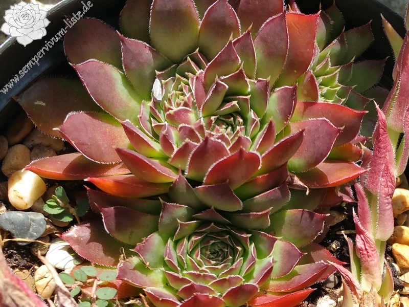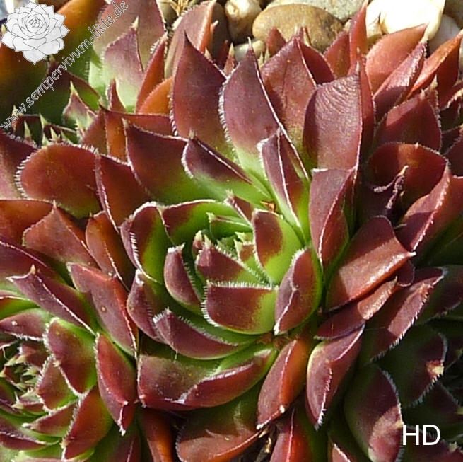 Rosetten 5 cm, Blätter lanzettlich, lang bespitzt, Herz lindgrün, Rest dunkles Braunrot