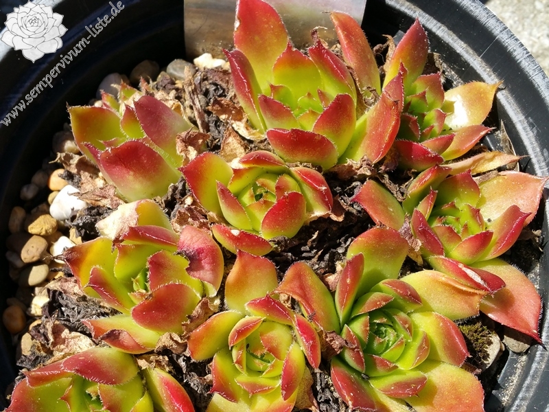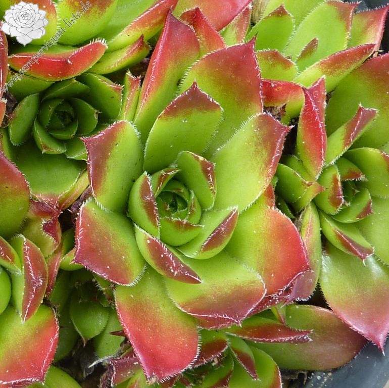 offene Rosetten, Blätter länglich, helles grün, Spitzen leuchtend rot, Blattränder bewimpert