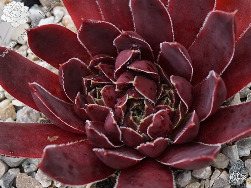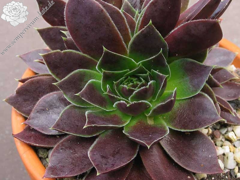 Unsere erste Jovibarba heuffelii Züchtung stammt aus einer Absaat von verschiedenen roten Typen. Im Frühjahr zeigt das Rosettenzentrum einen frisch, hellgrünen Farbton, die Blätter sind in der gleichen Farbe schmal umrahmt. Das kleine grüne Herz wirkt dabei sehr erfrischend. Im Sommer verschwindet die grüne Farbe komplett und die Rosetten sind gleichmäßig rot gefärbt. Im Zentrum bildet sich ein kräftig rot gefärbter Ring.