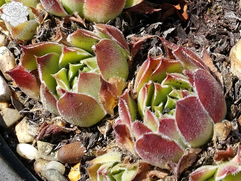 Rosetten 5 cm, hell grün mit roten Spitzen, samtige Substanz, Ränder stark weiß bewimpert