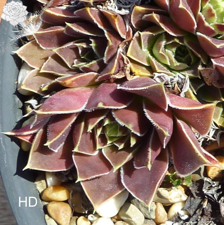Rosetten 4 cm, Blätter lanzettlich, lang bespitzt, trübes Rot - Altrosa, Blattränder hell