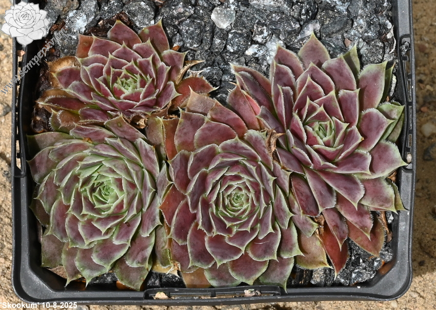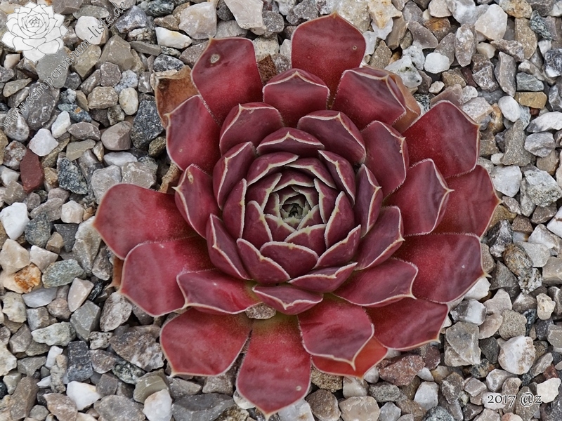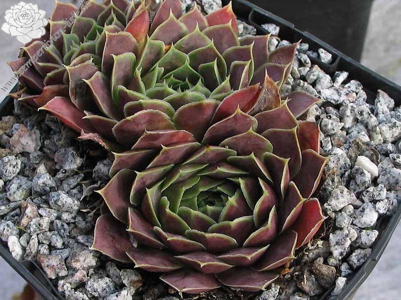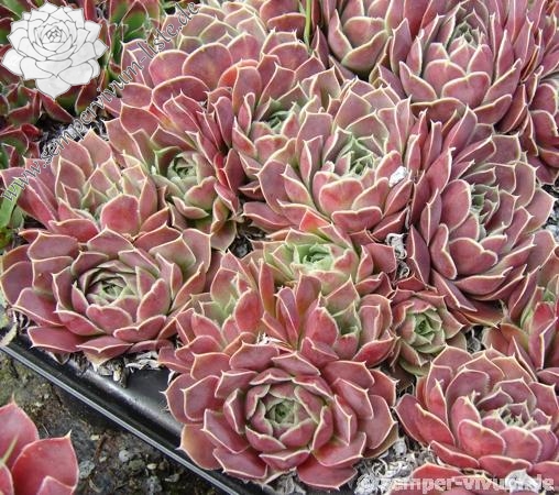 Diese bezaubernden Sorte wurde in den 90er Jahren vom belgischen Züchter Gaston Wuyts ausgelesen und benannt: Im Frühjahr hüllen sich die über 10cm großen Rosetten in ein auffallendes Violett-Rot. Während der Sommermonate spielen die spitzen Blätter dann mit rosafarbenen Schattierungen.