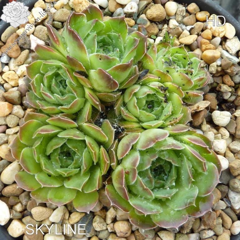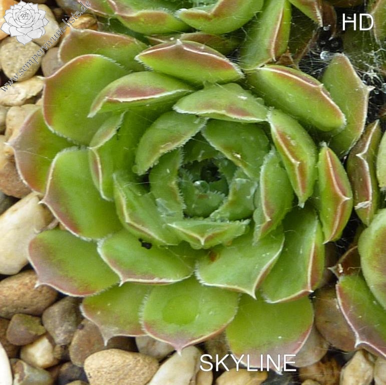 Rosetten bis 6 cm, Blätter breit rundlich, kurz bespitzt, grüngelb, Spitzen hellbraun