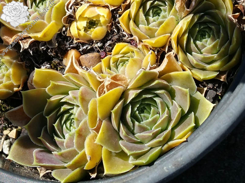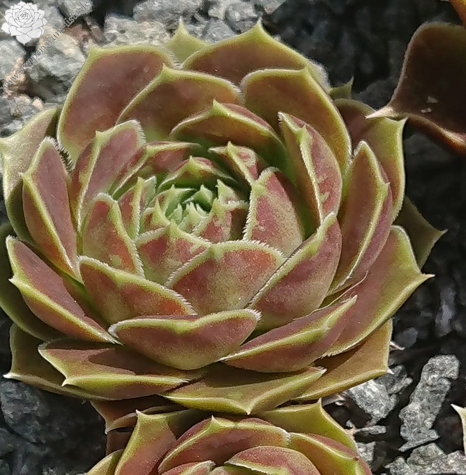 kleine Rosetten, hellgrün, mit etwas bräunlicher Panaschierung, Blattränder bewimpert