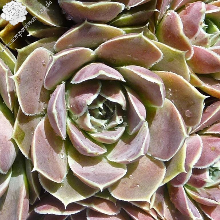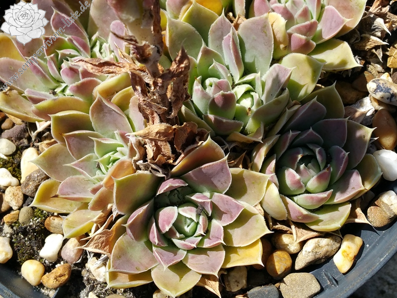 Rosetten 5 cm, Mischtöne grün, beige, rot, helle Blattränder bewimpert