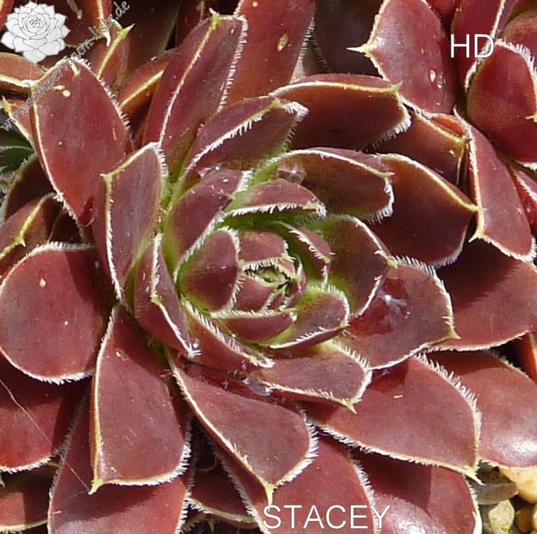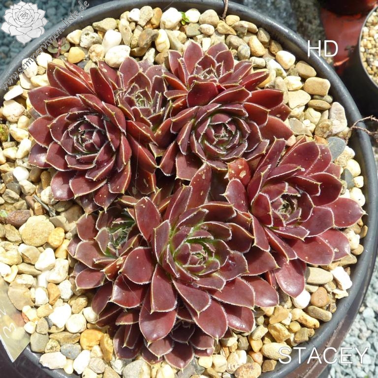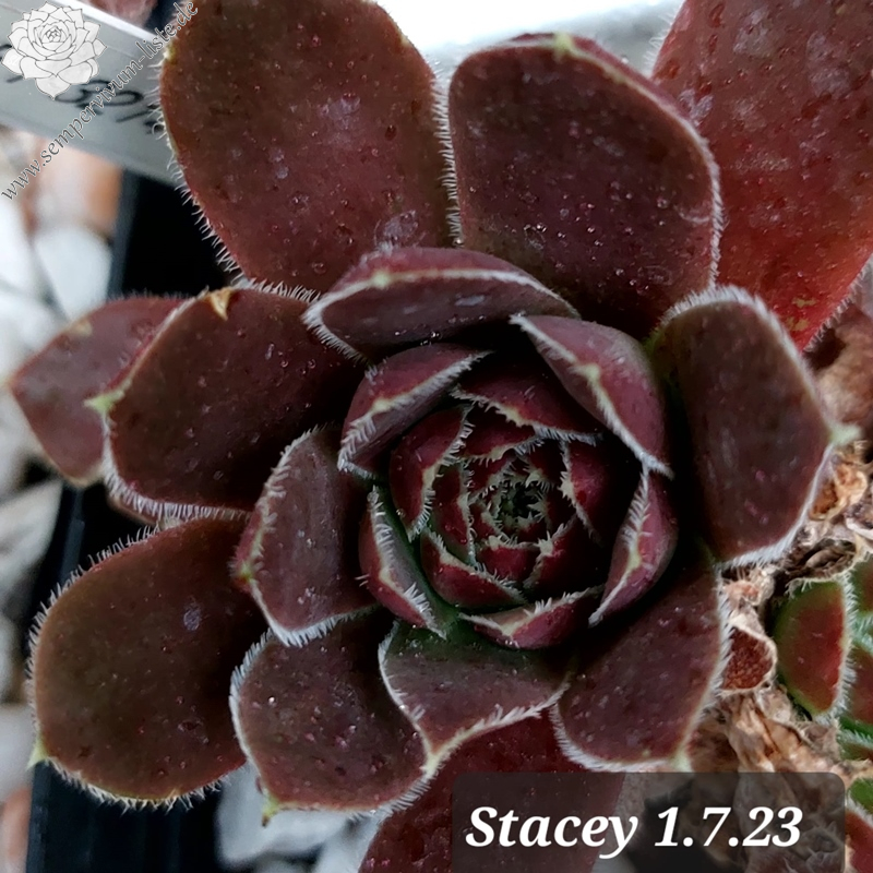 Rosetten bis 5 cm, Blätter oval, kurz bespitzt, braunrot, Blattränder bewimpert