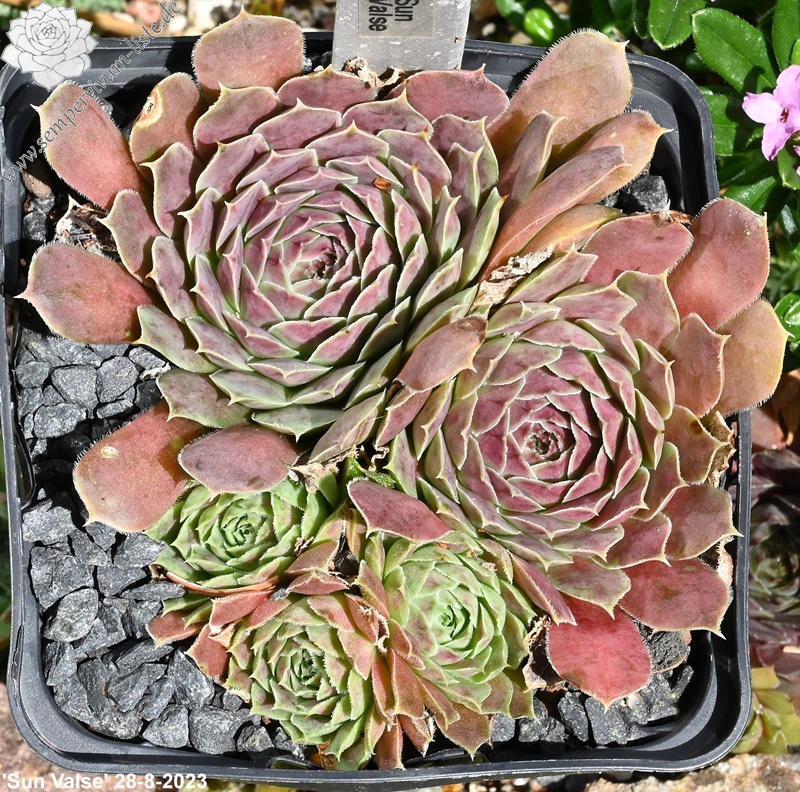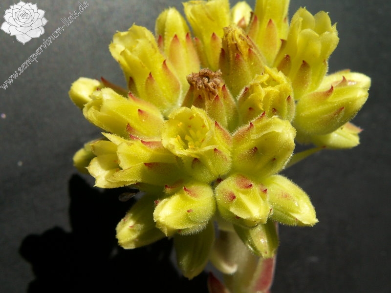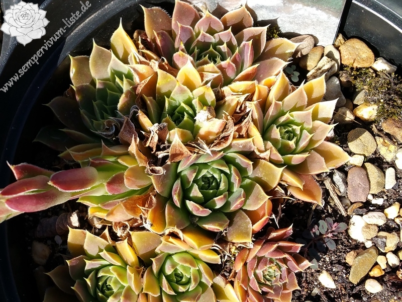 kleine Rosetten, Blätter keilförmig, kurz bespitzt, rot - braun, Blattränder gelb, bewimpert