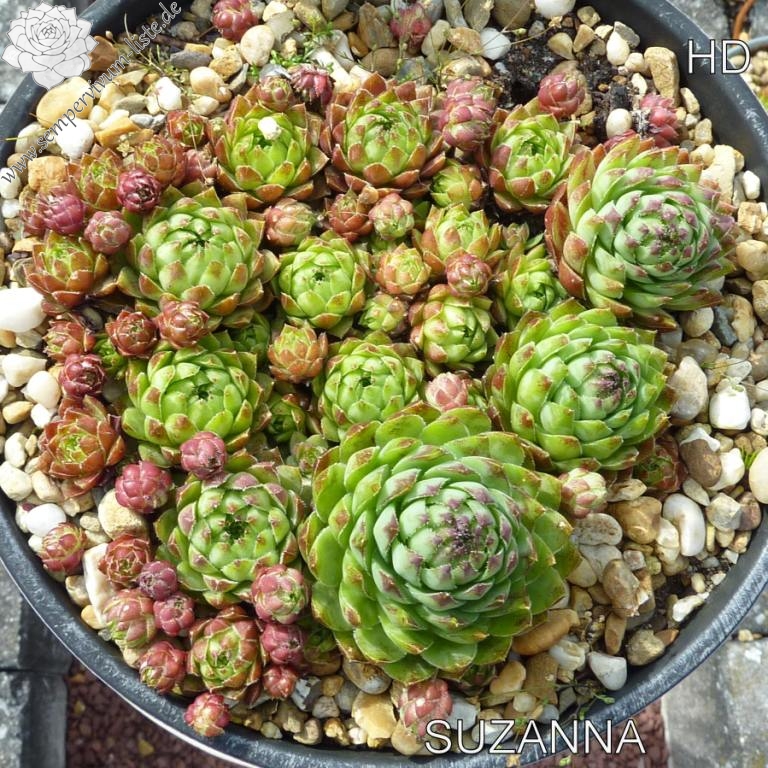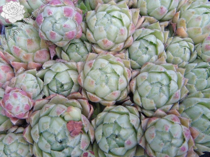 Diese belgische Hybride zählt zu meinen Favoriten. Die creme jade- bis olivgrünen Rosetten sind teilweise rosa gefleckt.