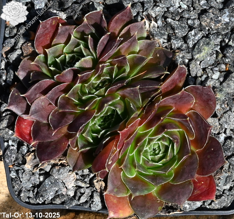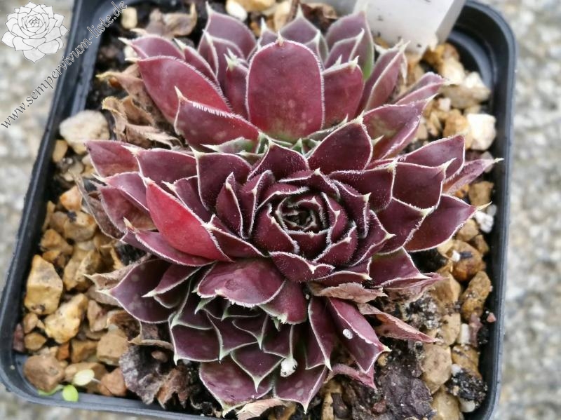 Rosettenn bis 5 cm, Blätter lanzettlich, lang bespitzt, purpurrot - braunrot, Basis hellgrün, Blattränder bewimpert