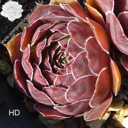 Rosetten 5 cm, Blätter keilförmig, lang bespitzt, rotbraun - altrosa, Ränder bewimpert