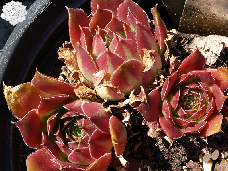 Rosetten bis 6 cm, helles Rotorange, Blattränder weiß bewimpert