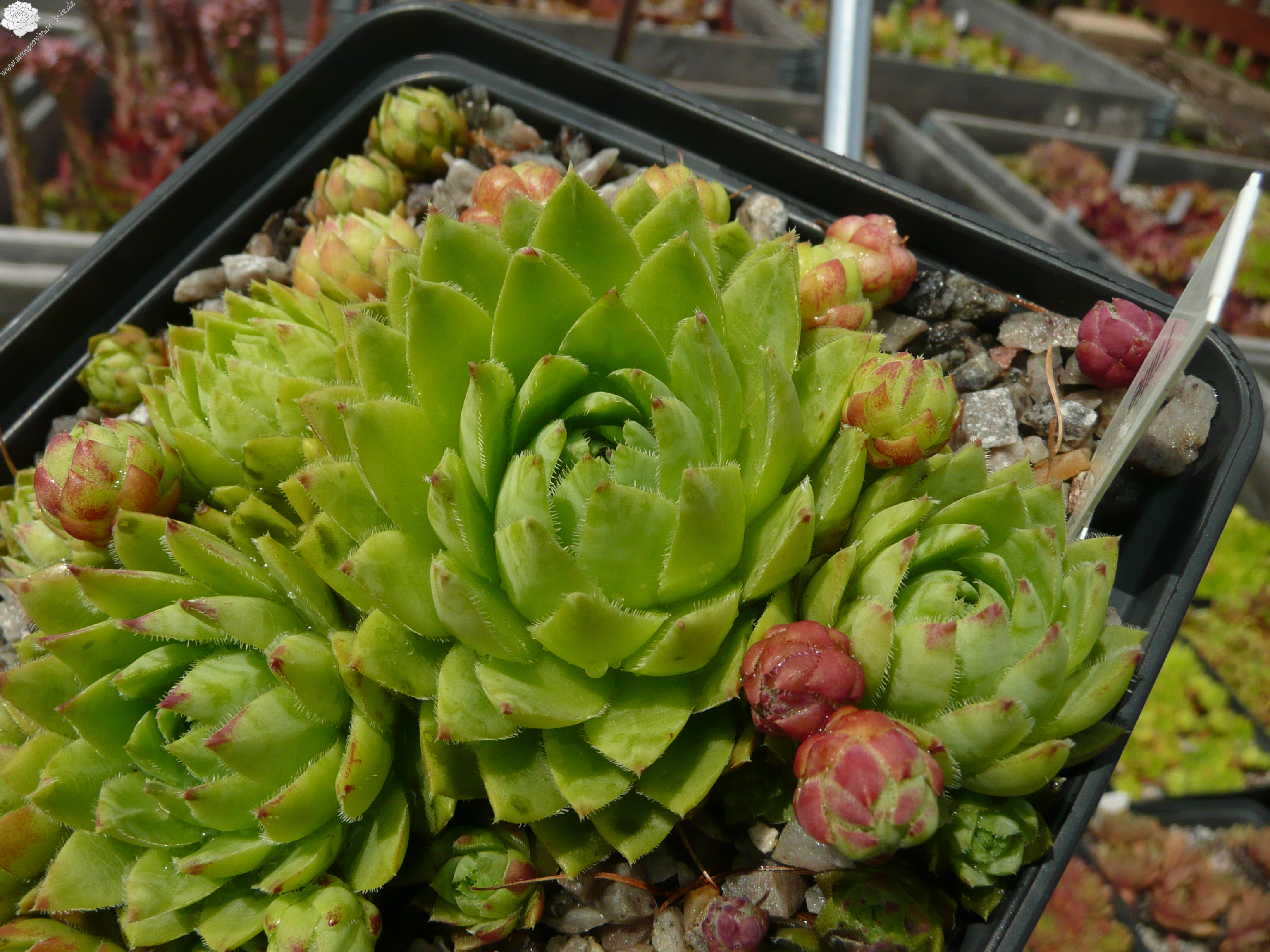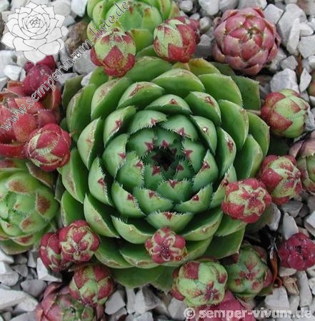 Eine Auslese von André Smits, die Ende der 80er Jahre eingeführt wurde. Sie formt leuchtend grüne knubbelige Rosetten. Die Blattspitzen sind leicht mahagonibraun gefärbt.