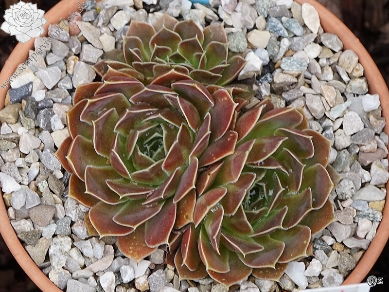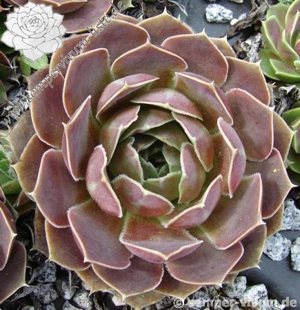 Ein britischer Kultivar von David Ford: größere Rosetten spielen ganzjährig mit braunrosa und violetten Farben.