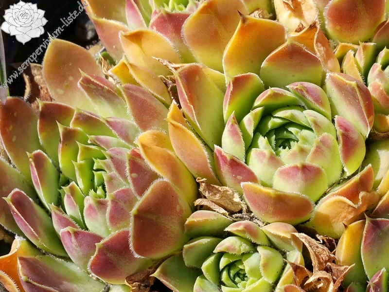 große Rosetten, hellgrün mit braunen Spitzen, Blattränder bewimpert