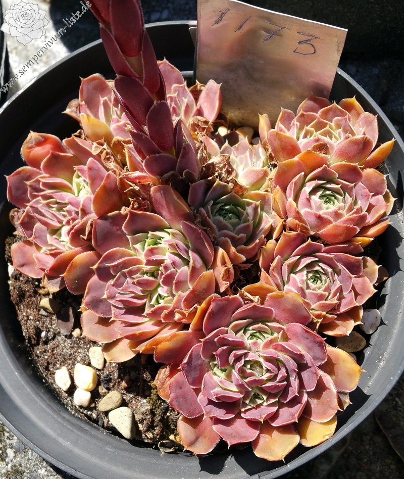 spatelige Blätter, kurz bespitzt, Rosetten bis 5 cm, rosa-rot mit hellem Blattrand