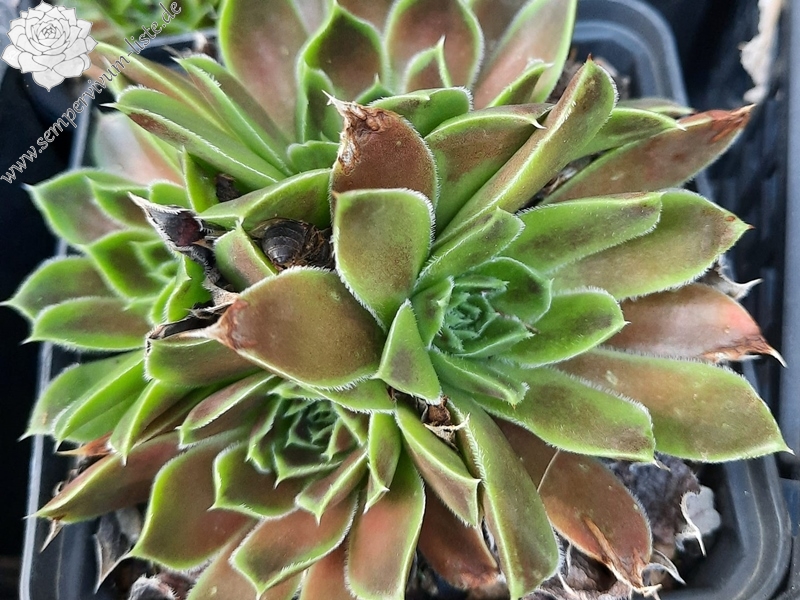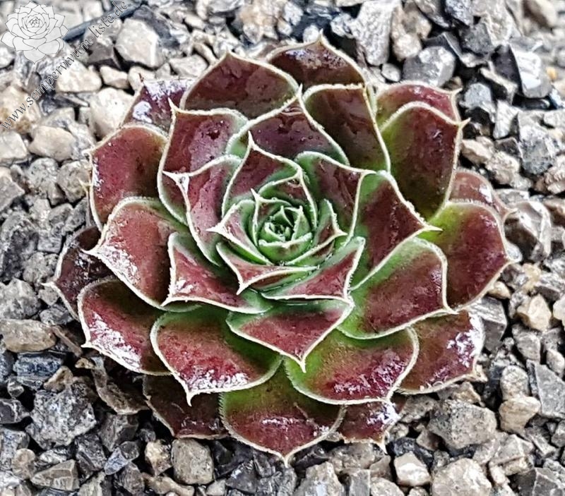Rosetten bis 6 cm, Blätter lanzettlich, lang bespitzt, braunrot, Blattränder bewimpert