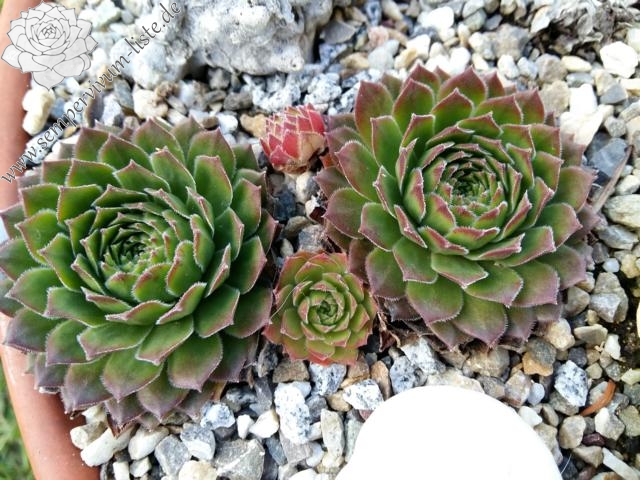 Sempervivum 'Abendrot' ist wirklich eine sehr auffallende Kreuzung. Im Mai leuchten die mittelgroßen Rosetten in kräftig roten Farben. Das Rosettenzentrum hebt sich deutlich ab und zeigt sehr helle, fast gelbe Farben. Eine tolle Züchtung!