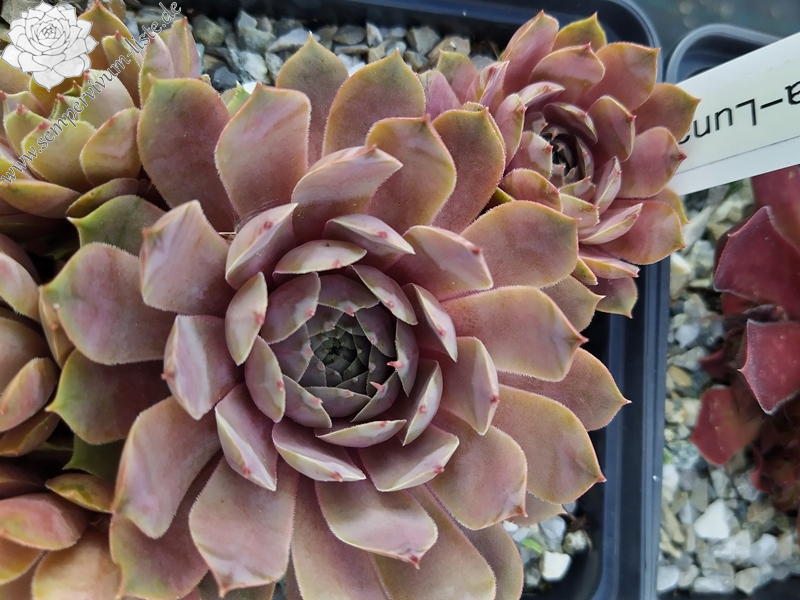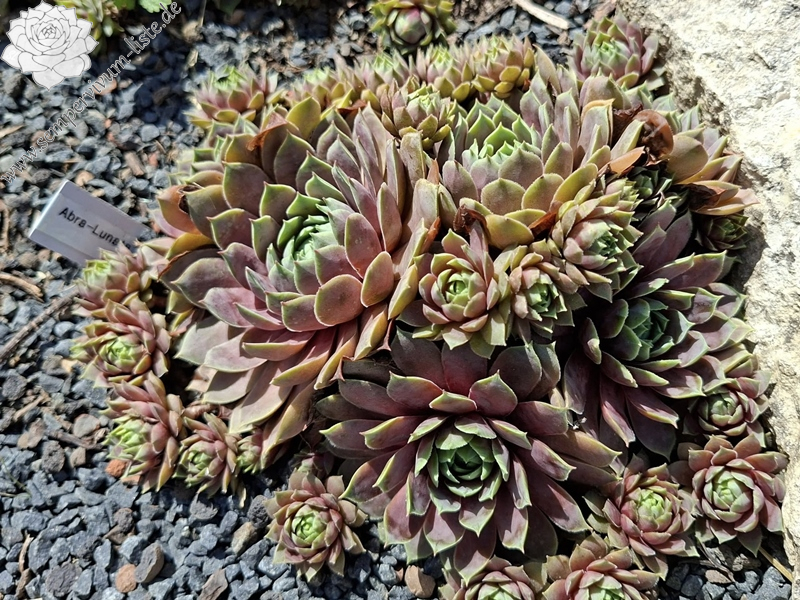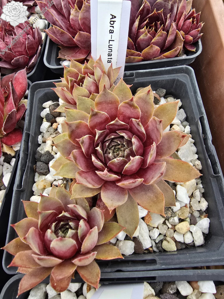 'Abra-Lunata' wird bis zu 8 cm groß, durch ihre leicht altrosa Farbe, die aus der Mitte hervortritt, wirkt sie sehr dezent. Die äußeren Blattenden sind leicht graugrün. Sie ist robust und kindelt sehr gut.