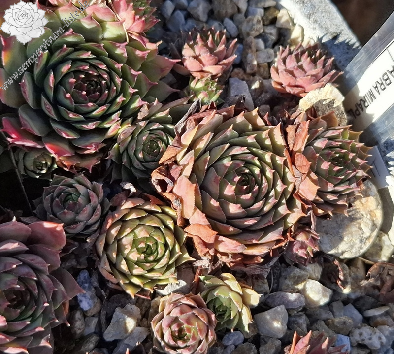 'Abra-Mirapla' zeigt sich im Frühjahr auch sehr kompakt, da sie im Spätherbst und Winter ihre äußeren Blätter abgibt. Die Farbe ist zu dieser Zeit ein intensives Rotbraun, was nach außen in ein Lila übergeht. Innerhalb weniger Tage ist sie Dunkellila. Mit Beginn des Sommers öffnet sie sich, mitunter bis zu einer Größe von 8-10 cm und verblasst in der Farbe zu einem zarten Gemisch von Lila/Rosa mit gelblichgünen Blattspitzen und einer mitunter tollen Marmorierung.