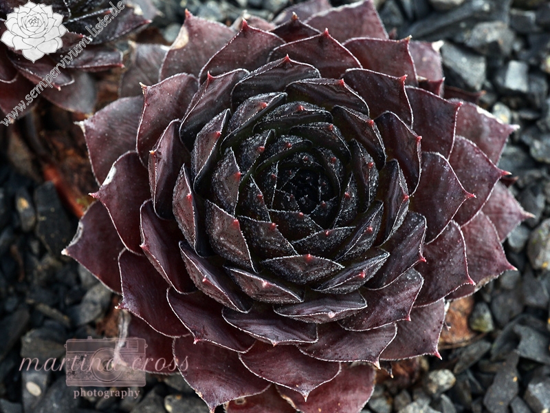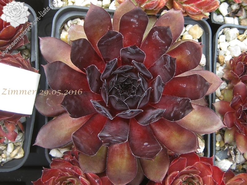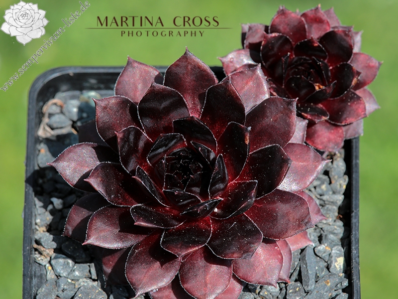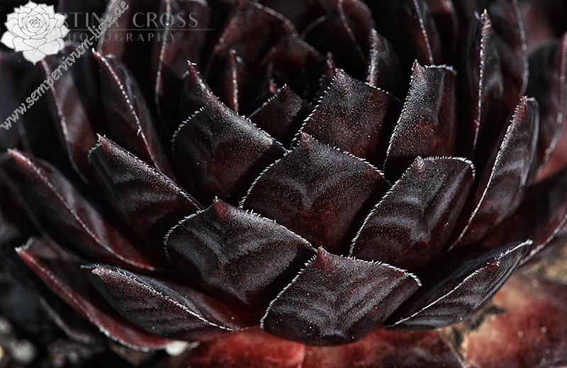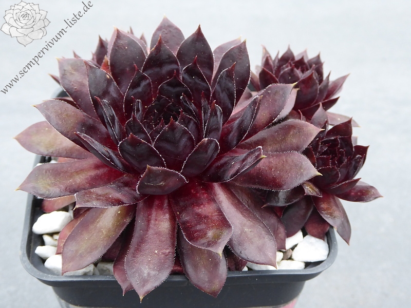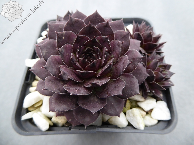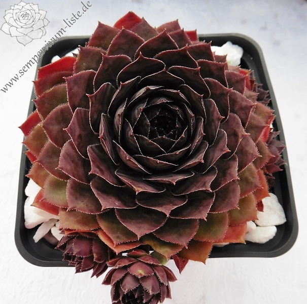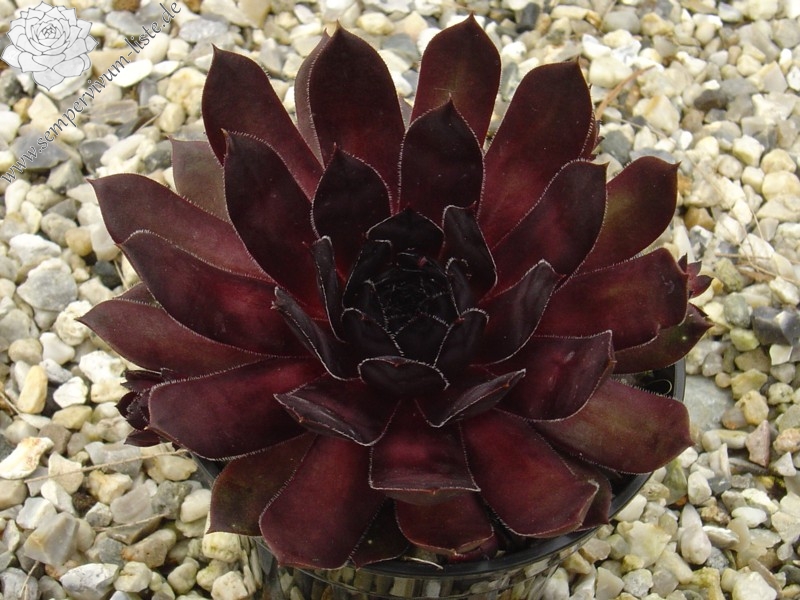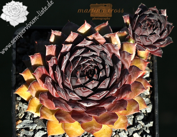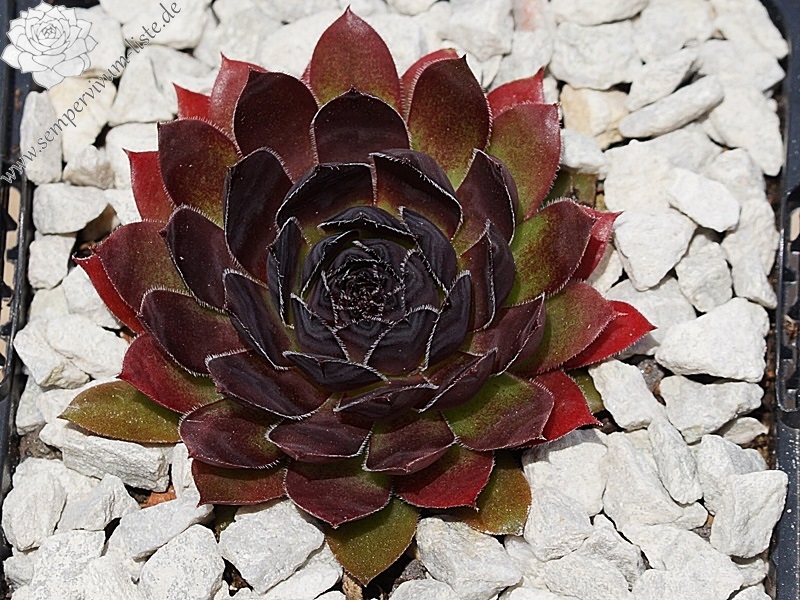 Sempervivum 'Ace of Spades' startet mit sehr dunkel gefärbt Rosetten. Die Rosetten erreichen einen Durchmesser von ca. 9cm und sprossen willig. Im Sommer hellen die äußeren Blattränder deutlich auf und zeigen fast gelbliche Farben. Es handelt sich um eine sehr robuste Züchtung.
