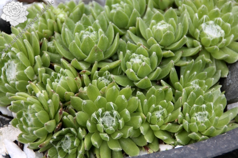Mittlerweile gibt es unzählige S. arachnoideum Hybriden wovon viele immer noch Ihren eigenen Charakter besitzen. Unserer Meinung ist auch diese neuere Auslese aus Deutschland von den vielen weiteren bekannten Spinnwebhauswurzkultivaren zu unterscheiden. Sempervivum 'Almaros' bildet größere, grasgrüne Rosetten mit dichter Bespinnung.