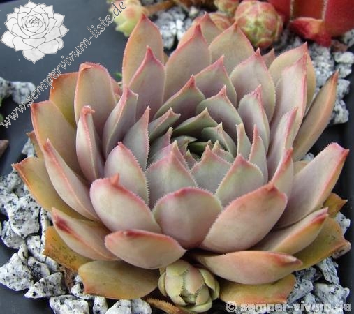 'Andinn Semiasaz' formt mittelgroße Rosetten mit etwas breiteren Blättern. Sehr schön sind die kontrastreichen Spitzen während der Frühjahrsfärbung in dunklem Rosaviolett. Im Sommer haben die Blätter vor allem Abends einen bläulichen Touch!