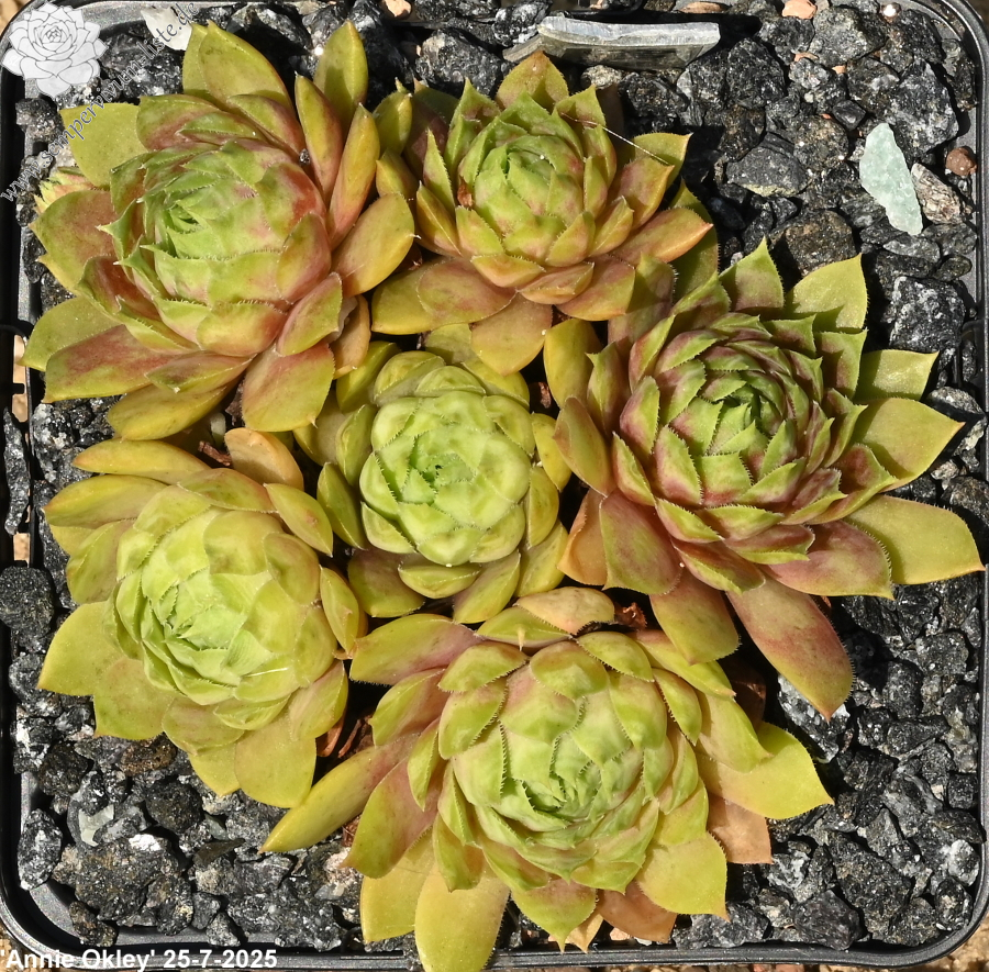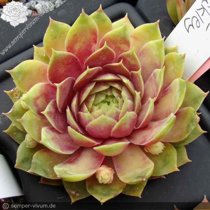Die Färbung dieser belgischen Schönheit erinnert uns im Mai und Juni an einen "Batik-Look" aus verschiedenen Rosatönen auf oliv- bis jadegrünen Blättern, später zeigt sie sogar gelbgrüne Farben. Der Durchmesser der Rosetten misst je nach Jahreszeit ca. 6 bis 9 Zentimeter. Ein neuer Liebling in unserer großen Sammlung.