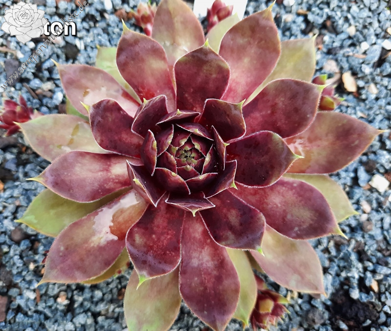 Diese Pflanze habe ich nach meinem Enkel benannt. Sie hat jetzt im Juni ein blauschwarzes Herz mit toller Marmorierung. Die mittleren Blattreihen tragen einen goldenen Fleck im oberen Teil, der auch ohne Sonne strahlt. Die äußerste Blattreihe ist grünlich panaschiert und bildet einen schönen Kontrast.