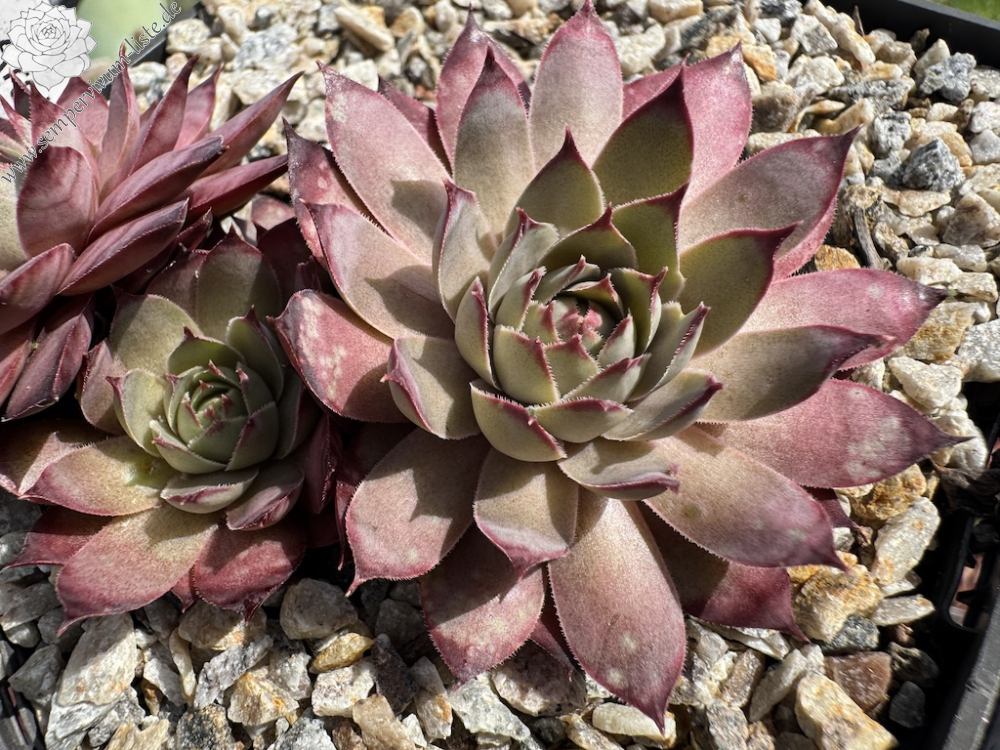 Im Herbst werden die Rosetten heller, fast rosa, die Spitzen bleiben dunkler und die Blätter nehmen eine fast hellgraue Färbung an, rosa umrahmt und mit kleinen weißen Wimpern besetzt.