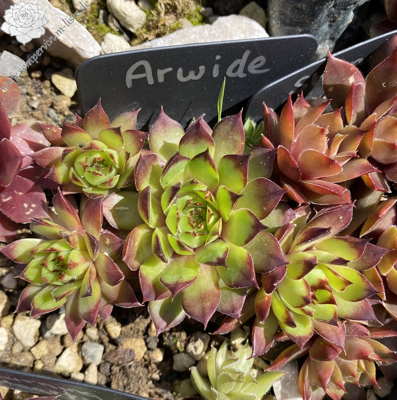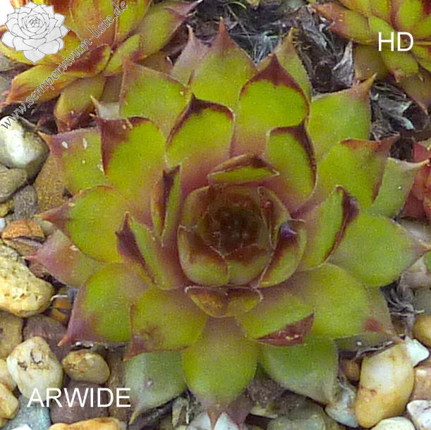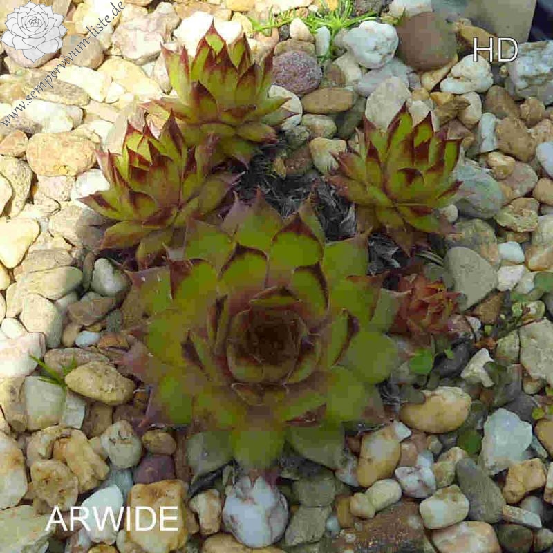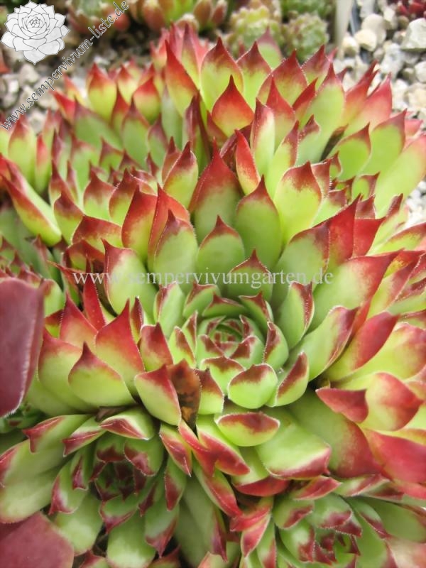 Diese unbekannte belgische Hybride aus den 80er Jahren formt Rosetten ähnliche einer S. tectorum Form mit schmaleren Blättern deren Spitzen relativ lang gezogen sind.