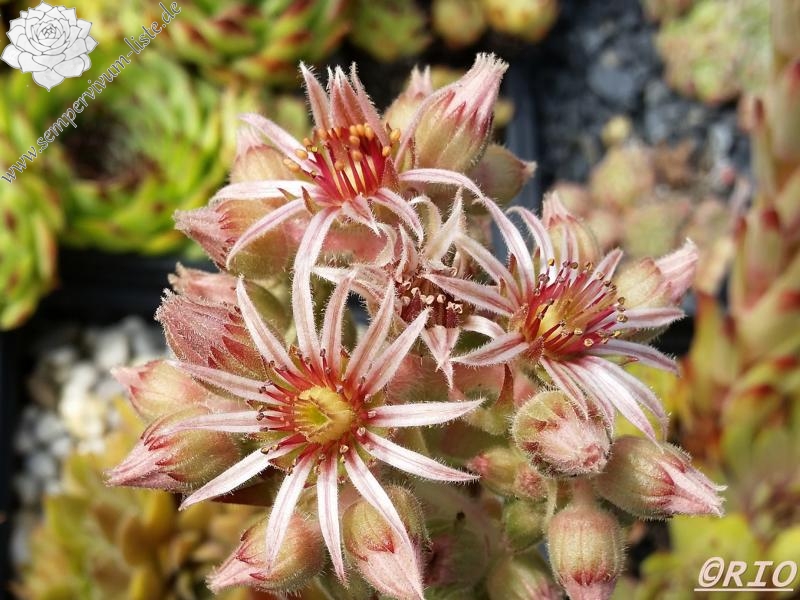 Rosetten mittlerer Größe, pink -rote Rosetten, in der Mitte zu bronce - grün wechselnd