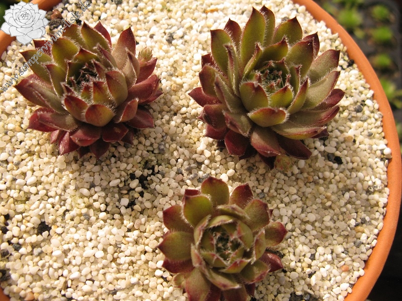 Diese Liebhaberpflanze formt eher kleinere Rosetten in attraktiven Farbe, die schwer zu beschreiben ist. Ganzjährig spielt sie mit Bronze, Ocker, Himbeerrosa und verschiedenen orangen bis rötlichen Tönen. Die Blattränder sind dicht mit langen, weißen Wimpern versehen, was einen beeindruckenden Kontrast ergibt. Eine auffallende Schönheit in jeder Sammlung!
