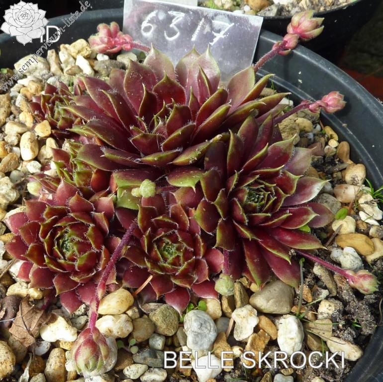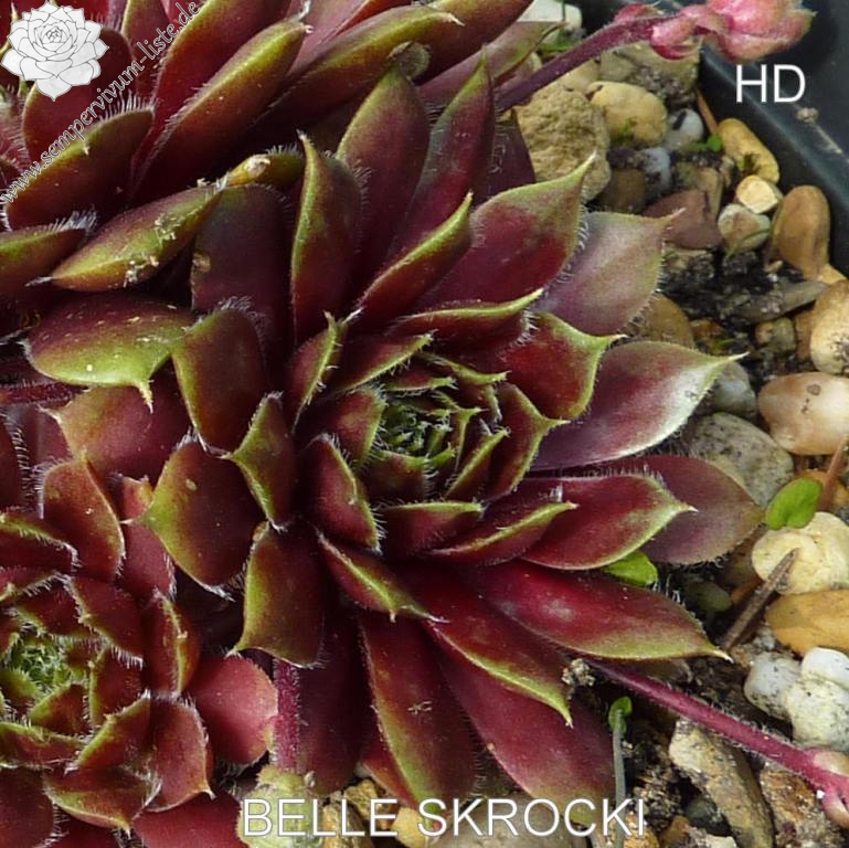 Die belgische Auslese formt relativ große Rosetten mit himbeerrosa Färbung überzogen. Die Blattränder sind mit längeren, weichen Wimpern besetzt. Bestimmt wurde 'Belle Skrocki' zu Ehren des amerikanischen Züchters Edward Skrocki benannt.