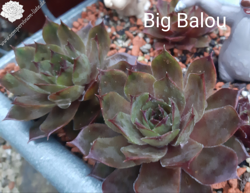 Die Semp stammt aus dem Garten meiner Eltern, Herkunft leider unbekannt. Ich vermute allerdings stark, dass es sich um einen Sämling einer auch dort stehenden ähnlichen, aber viel kleineren Sorte handelt. Der richtige Name ist übrigens Big Balou, benannt nach unserem Hund.