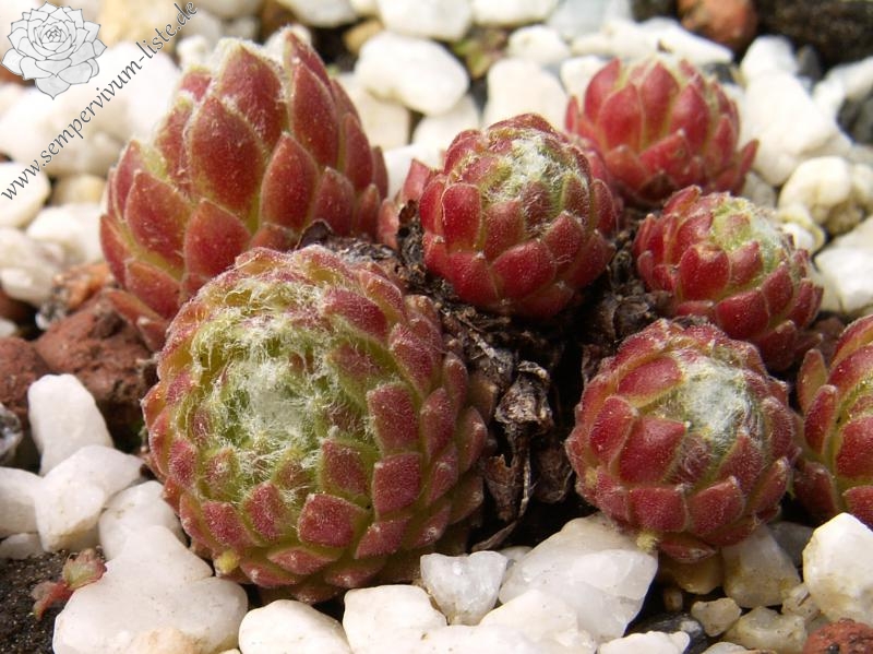 Ein kugeliger Spinnwebhauswurz von mittlerer Größe. Er formt kompakte Polster. Die Unterseite der äußeren Blätter sind in einigen Monaten rosa bis orange gefärbt. Später nimmt die grüne Grundfärbung sogar einen gelblichen Ton an.