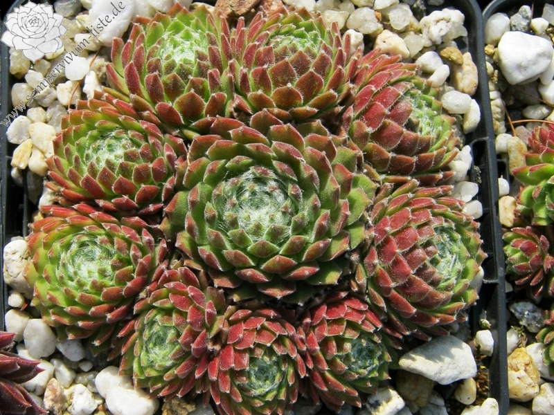 Ein mittelgroßer Typ mit schöner orangeroter Farbe. Die Rosetten sind schön kugelförmig.