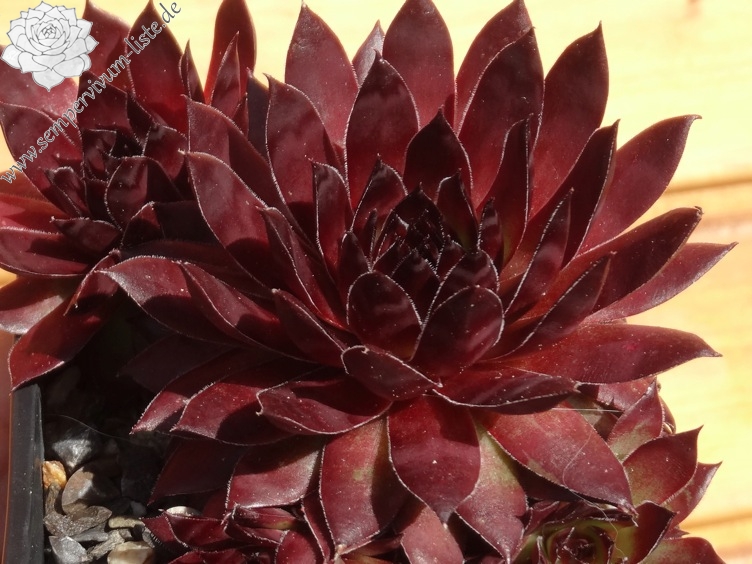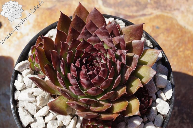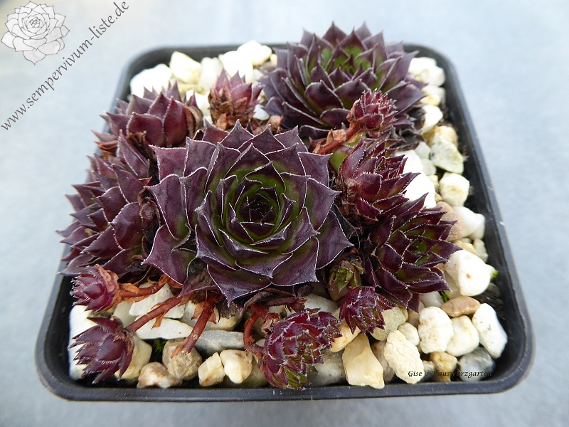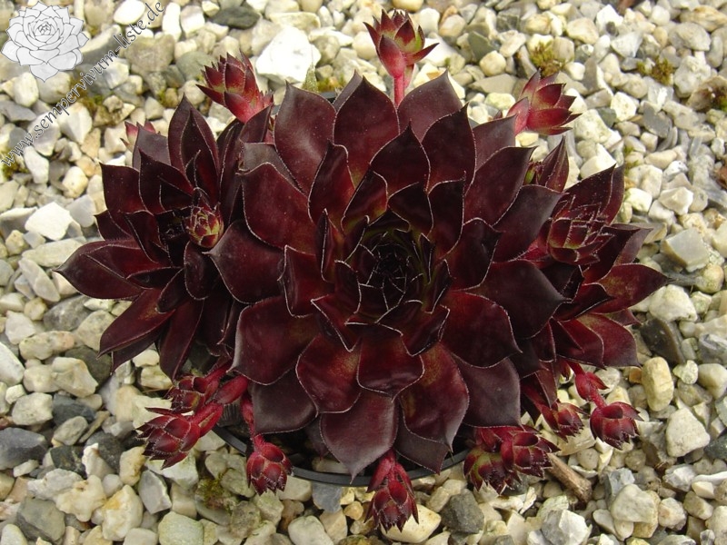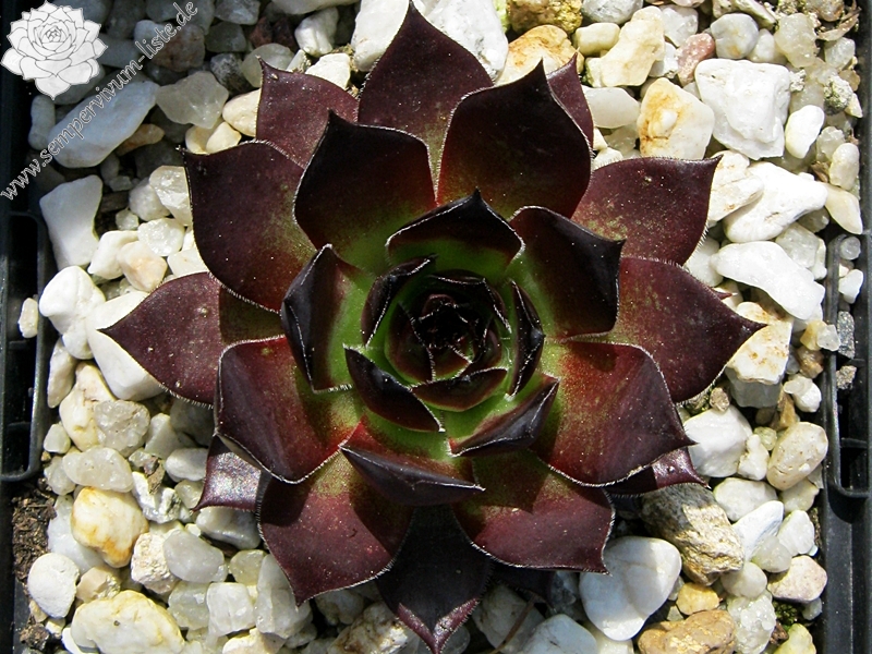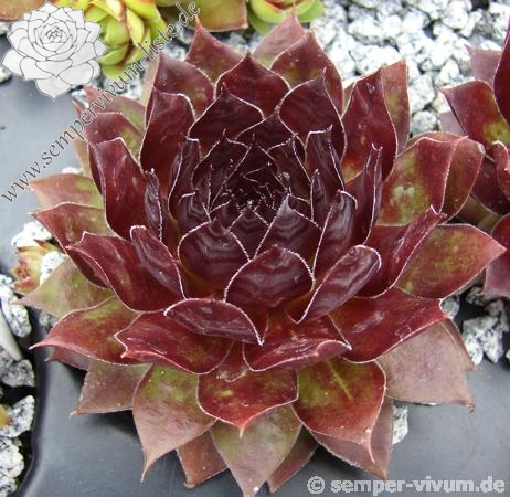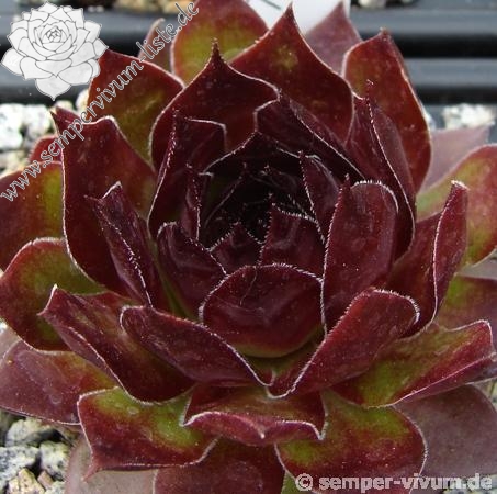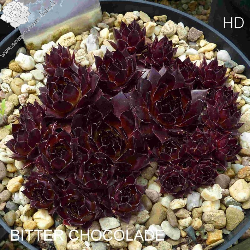 Der Name ist wirklich sehr zutreffend: Größere, schokoladenbraune Rosetten, die auch noch im Sommer eine auffallend dunkle Färbung zeigen. Die Blätter sind silbrig bewimpert und lang bespitzt. Die englische Züchtung von Sue Thomas formt hübsche Polster.