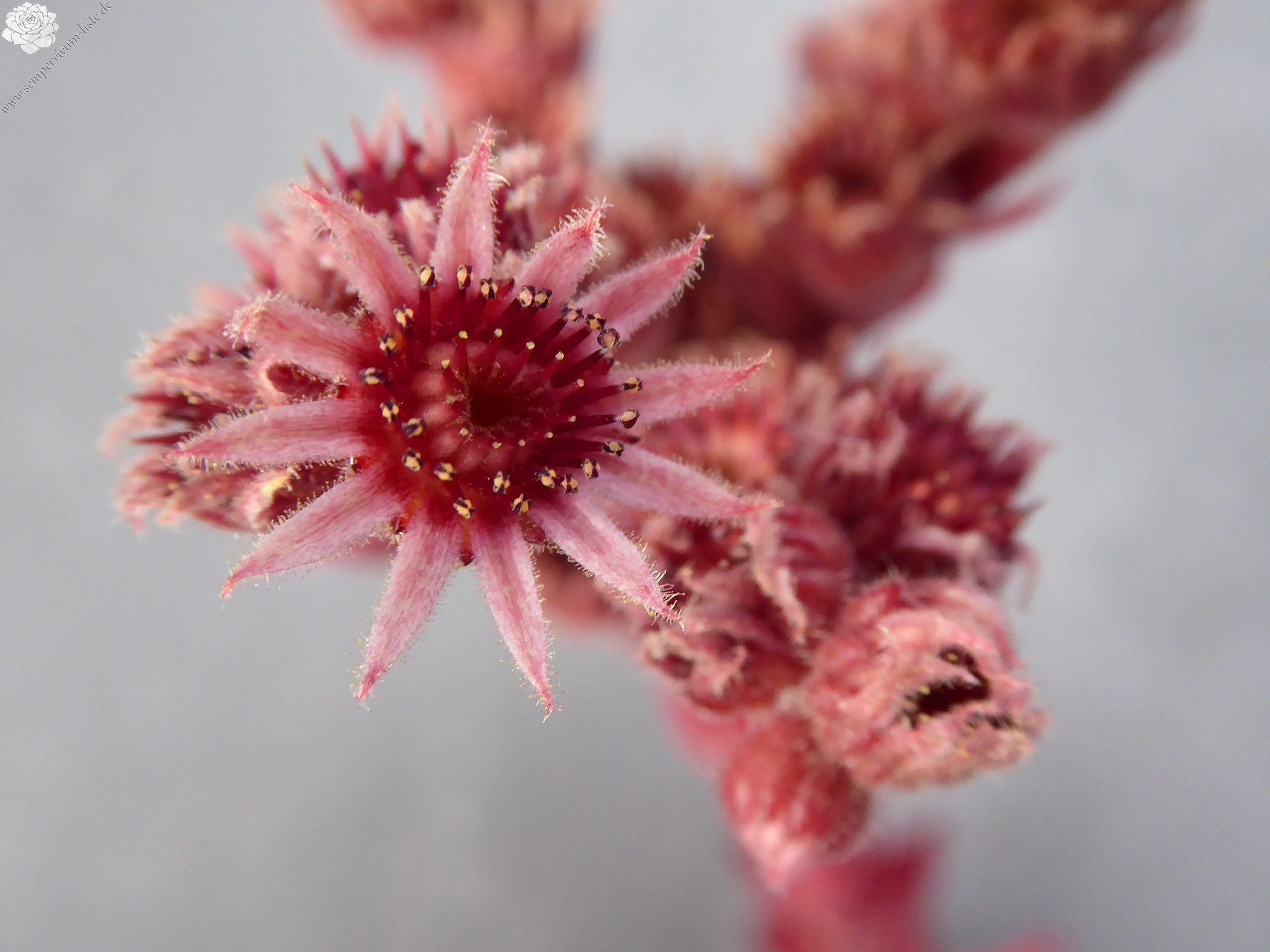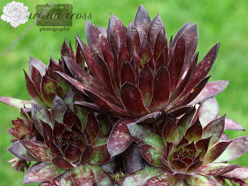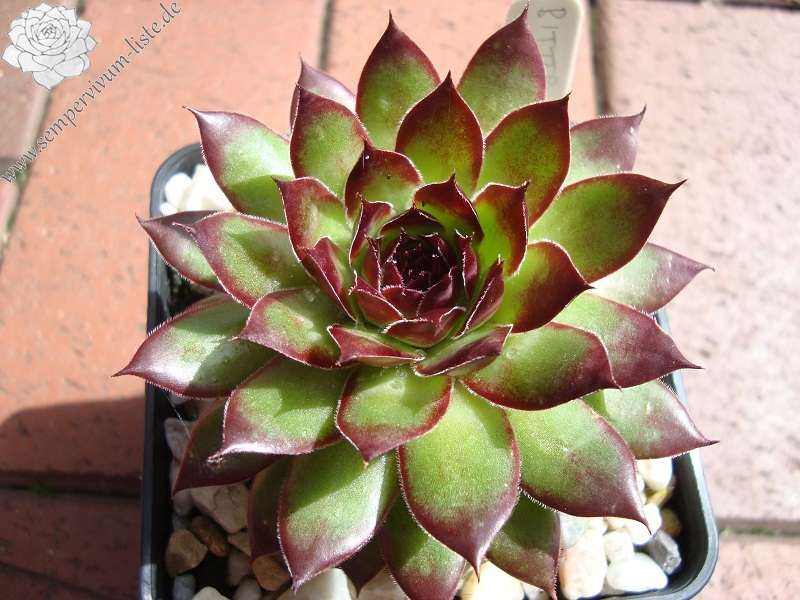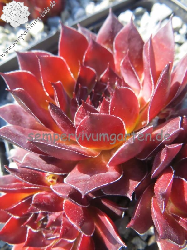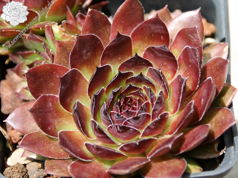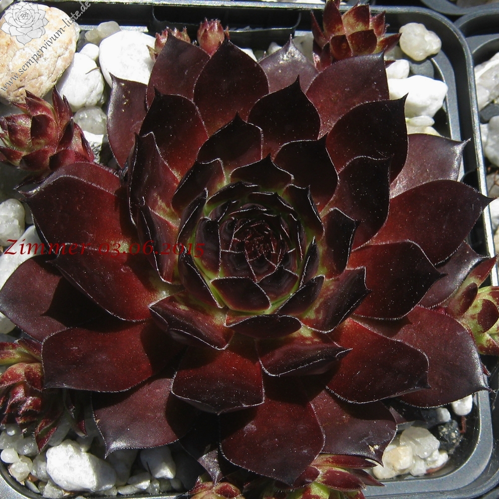Der Name ist wirklich sehr zutreffend: Größere, schokoladenbraune Rosetten, die auch noch im Sommer eine auffallend dunkle Färbung zeigen. Die Blätter sind silbrig bewimpert und lang bespitzt. Die englische Züchtung von Sue Thomas formt hübsche Polster.