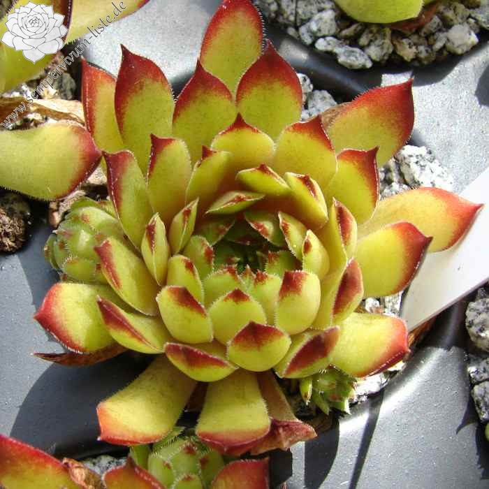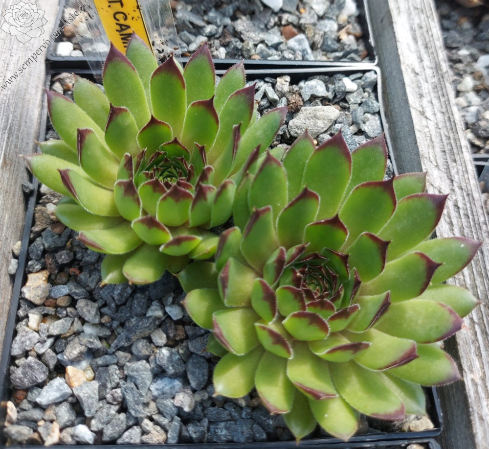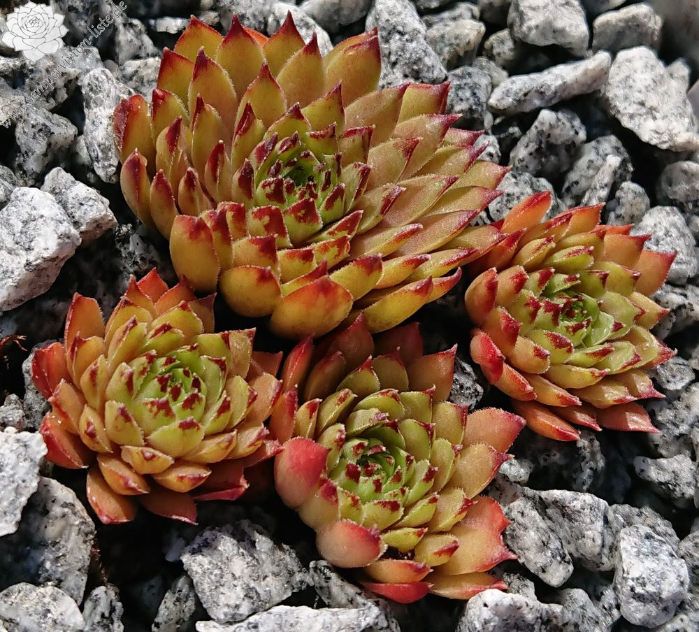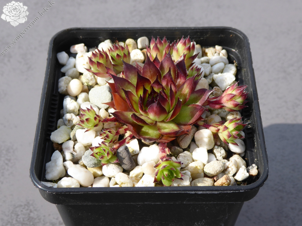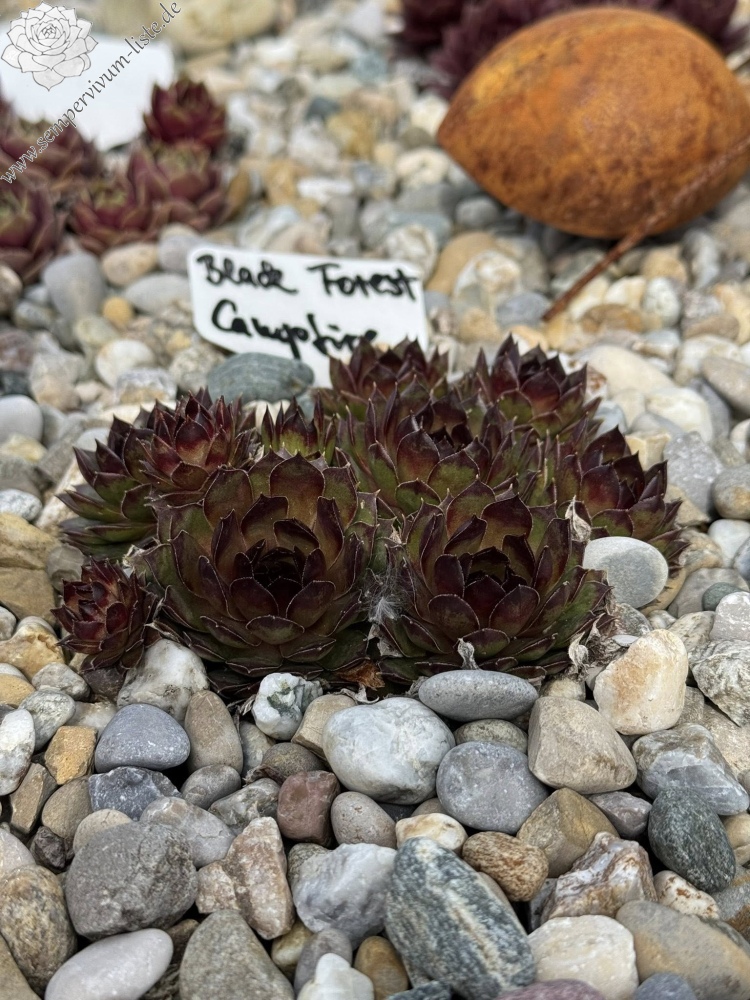 Mit dieser neuen mittelgroßen Selektion aus dem Schwarzwald haben wir es nicht etwa einem loderndes Flammenmeer zu tun, sondern man stelle sich eher eine gemütliches Lagerfeuer bei Dunkelheit vor, dass nach langer Brenndauer eine beruhigende Lagerfeuer Atmosphäre ausstrahlt. Betrachtet wir die Rosette mit seiner Kolorierung vom außen zum Zentrum genauer an. Die glänzenden, schmalen spitz zulaufenden Blätter zeigen im Frühling eine anfängliche warme orangegrüne Grundfärbung mit kleinen hellen rotbraunen Blattspitzen. Im fortschreitendem Jahresverlauf des Spätsommers verfärbt sich die vielblättrige Rosette vom Rand her immer dunkler. Das Zentrum bleibt letztendlich als heller glimmender Kontrastmittelpunkt erhalten, wie bei einem Lagerfeuer, bei dem die Flammen nach und nach sich reduzieren.