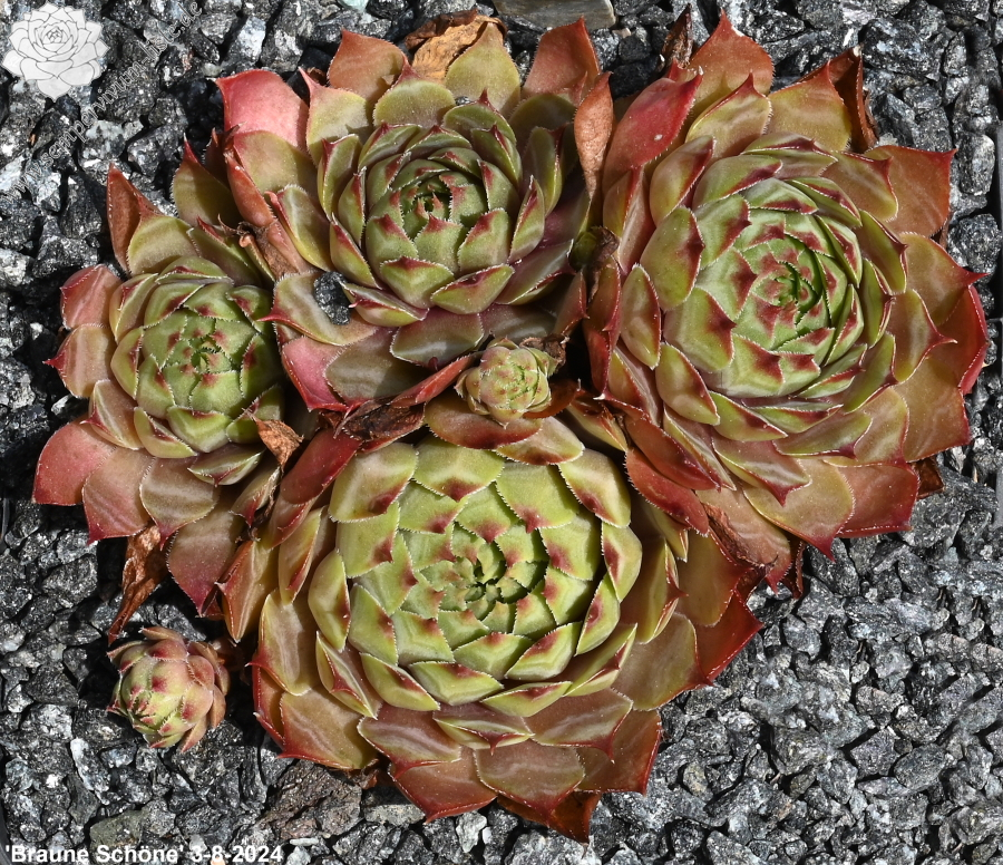 Sempervivum Braune Schöne ist eine kleinere Sorte, die stark sprosst und dichte Polster bildet. Die Farben passen gut zusammen!