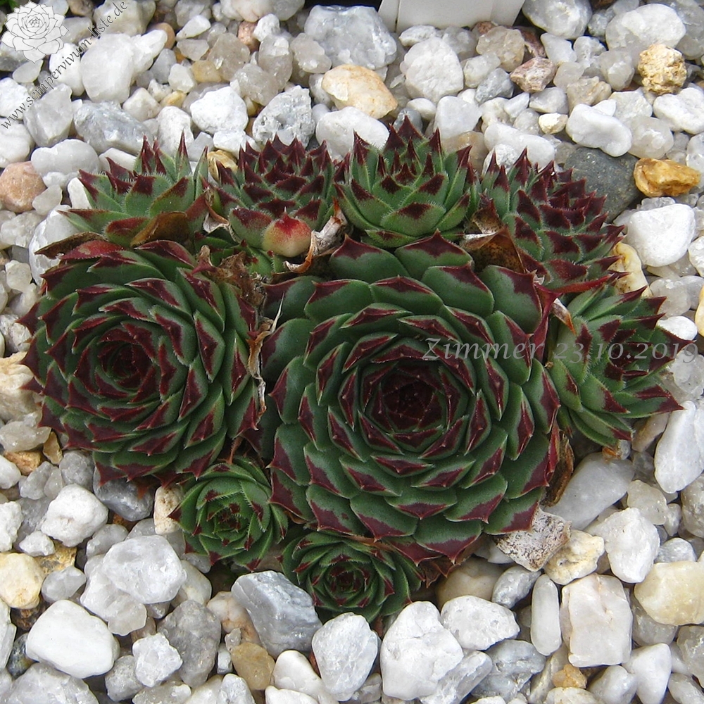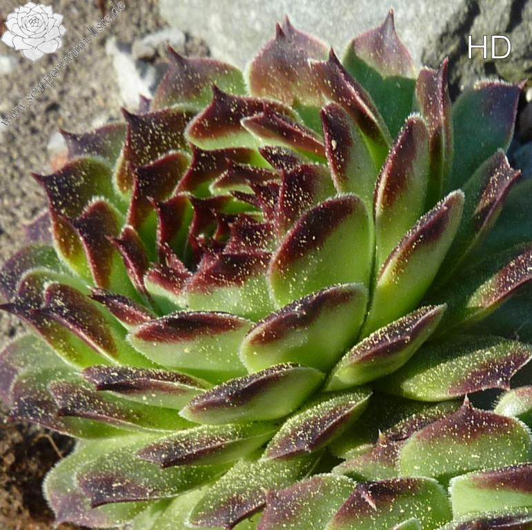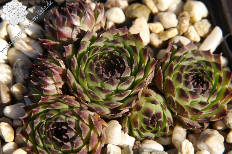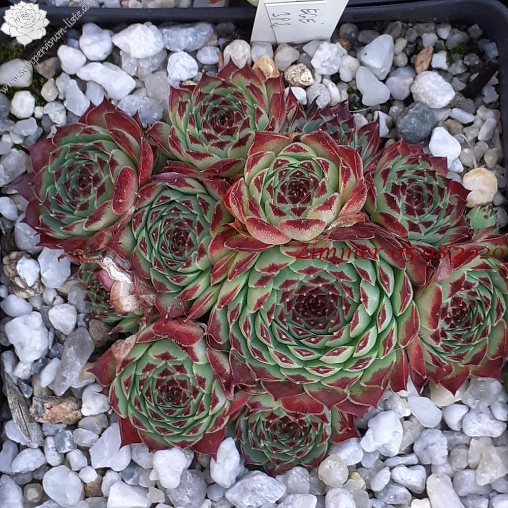 Erwin Geiger: Ein französischer Kultivar aus dem Westen des Landes. Für die Art verhältnismäßig mittelgroße Rosetten; während des ganzen Jahres mit breit, markant abgesetzten, burgunderroten Blattspitzen. PH382