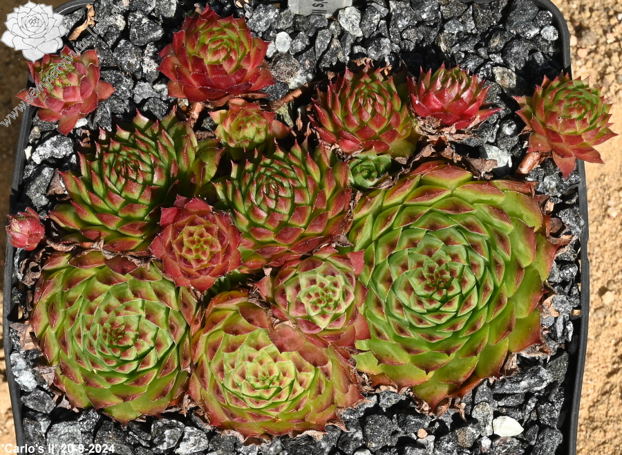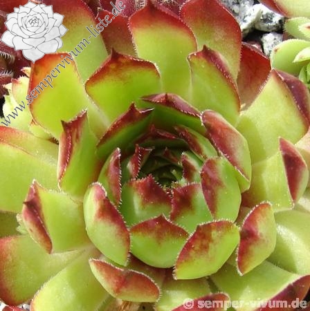 Hier haben wir eine kleine frischgrüne Sorte, die im Sommer leuchtend rote Spitzen zeigt. Die kleinen Rosetten bilden schnell sehr dichte Polster. Leider erscheinen die grünen Sorten zwischen den anderen farbigen Sorten fast schon etwas unauffällig. Hier täuscht jedoch der erste Eindruck. Bei dieser Sorte handelt es sich um eine sehr gute Züchtung, welche im Sortiment besonders im Sommer deutlich erstrahlt.